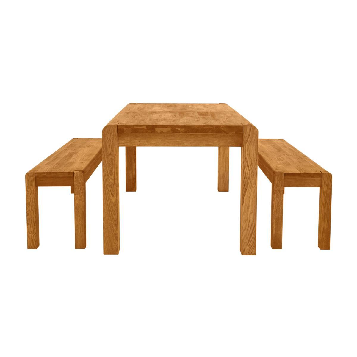 Superb craftsmanship meets casual, comfortable style – and all at a fantastic-value price. Bakerloo is beautifully made from real oak which means every piece is a one of a kind. The finish is warm-toned, and you’ll love the stylish details like the butcher block-effect tops and curved table edges. The collection offers two sizes of extending dining table, a dining chair and a dining bench, storage pieces and occasional tables, and a great choice of ready-made dining sets. Dine in relaxed style with this fantastic large dining set. The generously proportioned solid oak table seats eight and extends to seat ten and has a lovely butcher block-effect top. Paired with two large dining benches, it’s the easy way to enjoy family meals. Why you’ll love it. Solid oak dining set is beautifully crafted and great value. Casual contemporary style suits all interiors. Table has a striking butcher block-style top. Dining table and bench legs curve neatly into the rounded edges of the surface. The table’s butterfly extension mechanism is so easy to use. It’s made of real wood so each set will be different and unique. What you need to know. Wood has natural markings, knots and colour variations. Easy to clean wood finish – simply wipe with a damp non-abrasive cloth. There’s a wide choice of Bakerloo dining sets, or mix and match tables, chairs and benches to make your own. You can add upholstered dining bench pads for extra comfort.