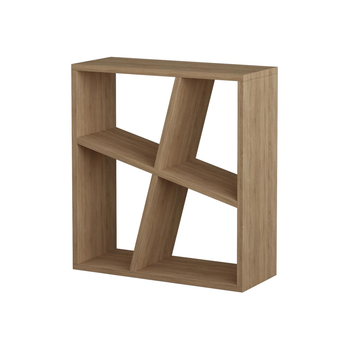 Raven Geometric Bookcase Bookshelf Shelving Unit with Cabinets - Sapphire Oak Pattern & White / Sapphire Oak Pattern & White