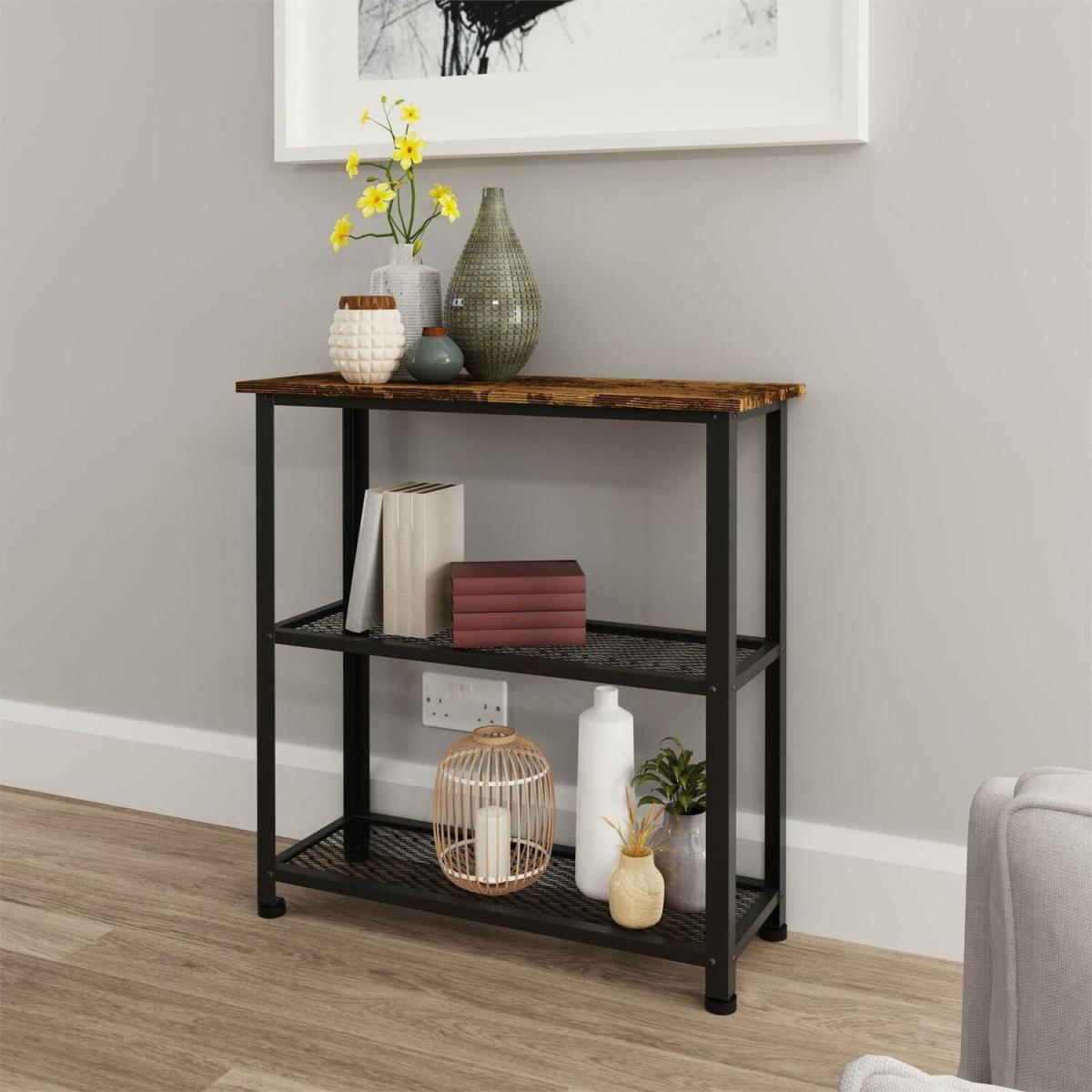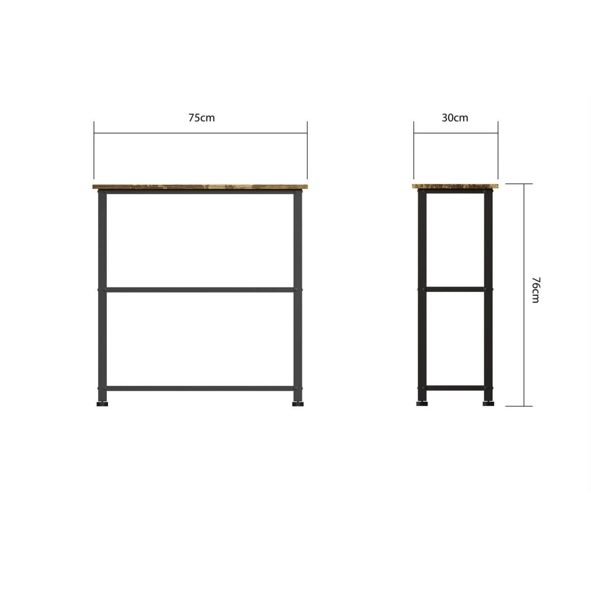 The Bala Range combines rustic wood grain style with black metallic frames, which blends seamlessly with any dcor making it the perfect fit for any home. This beautiful vintage style is ideal for living room or bedroom spaces. An industrial style shoe rack. This item has a classic look which combines black metallic frames with a classic wooden top. Mesh shelving can accommodate 6 to 8 pairs of shoes and offers a top shelf which is perfect for dropping your bag or keys at the end of your day. Measures H75.5cm x W75cm x D30cm. Other matching items available Rustic Wood Finish Part of the Bala Range. Manufactured using particle board, each item comes flat packed for self-assembly at home. Please note that due to lighting and different devices you might be using, the colour in the image may vary slightly for the actual colour of the product. If you have any questions before or after your purchase, please contact us without hesitation.