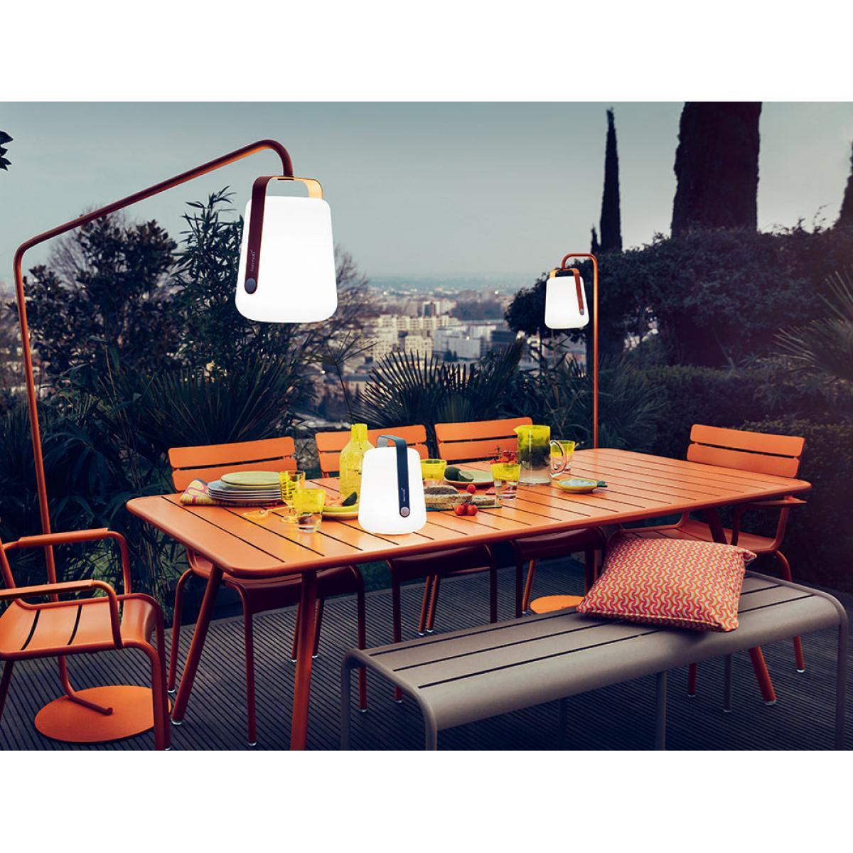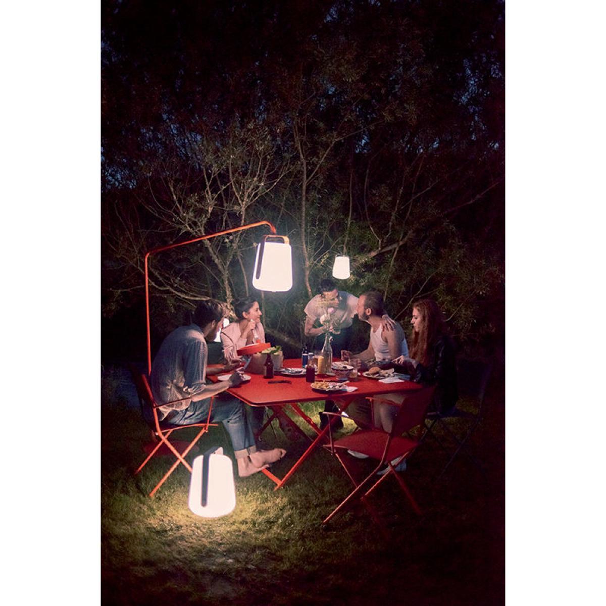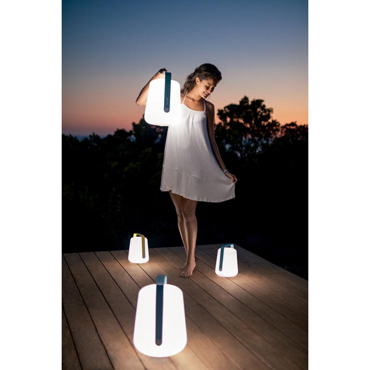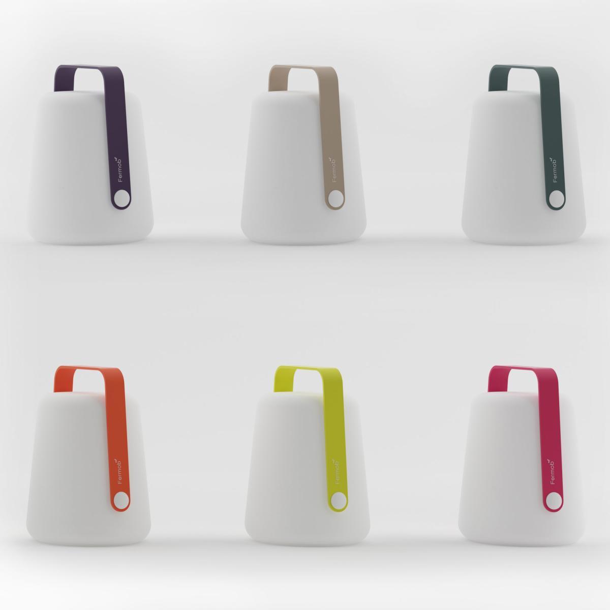 Fermob is making a remarkable entry into the world of outdoor lighting with its Balad lamp designed by Tristan Lohner. Full of joy and colour, you’ll love this wireless lamp for its modern look as much as its great price. Suitable for outdoor use, the Fermob Balad Lamp isreally mobile and you can move it around according to your needs, from house to garden, beach to camp site. Small ambient lamp in your living room or entrance hall, it’s ideal as a night light in a child's room (doesn’t get hot). In your garden or on your terrace, it’s perfect for creating a superb luminous atmosphere during meals and evenings outdoors. Equipped with a metal handle, it’s easy to carry or hang (to a hook, the branch of a tree. ). This wireless lamp is recharged using a standard USB cable (supplied). It offers up to 14 hours of battery life. The pressure button on the handle not only allows you to choose the light intensity, but also the temperature of the light (hot or cold light). These two temperatures create two different types of ambient lighting: "warm white" lighting (yellow shade) is very warm, while the "cold white" lighting (blue shade) shows up the surrounding colours more accurately. This lamp is equipped with a Dim'up function: it lights up gradually so as not to dazzle the user. 3 lighting options by pressing the button: -1 click = 100% cold white light -2 clicks: 100% warm white light -3 clicks: 50% warm white light -4 clicks = OFF - Long click = OFF.