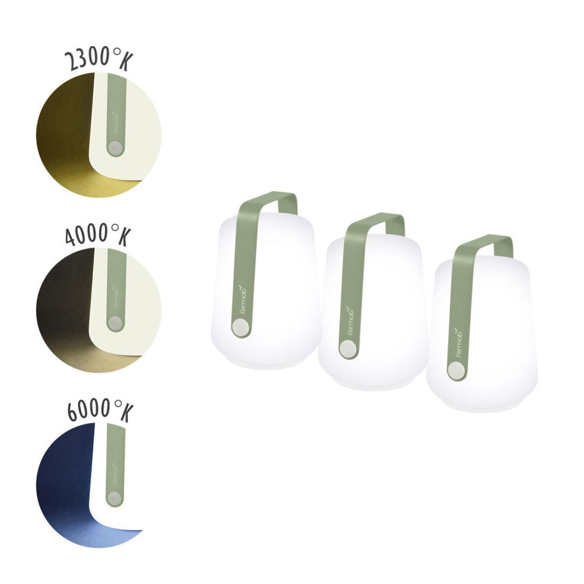 The Balad family is expanding with a new mini-size (H 12 cm) sold in sets of three! Joyful and colourful, these cordless lamps designed by Tristan Lohner impress with their modern look as well as their low price. Suitable for outdoor use, they are real go-anywhere items that can move around according to your needs, from home to garden, beach to campsite. Small mood lamps in your living room or entrance, they are ideal as a night light in a child's room (do not heat up). In your garden or on your terrace, they are perfect to create a wonderful ambient light during your meals and evenings outdoors. Equipped with a metal handle, they are easy to carry or hang (on a hook, a tree branch etc). These cordless lamps can be charged via a USB-C cable, which means you can charge all three lamps at once (supplied). They provide up to 14 hours of battery life for 3. 30 hours of charging. The pressure button located on the handle not only lets you choose the intensity of the light, but also its temperature (warm light, candle-like, or cold). These three temperatures create three different lighting moods: ''neutral white'' light (yellow hue) is very warm, ''cold white'' (blue hue) shows up the surrounding colours more accurately, while flickering lighting reproduces the ambiance of a candle. 3 lighting options by pressing the button: - 1 press = 100% cold white light - 2 presses: 100% warm white light - 3 presses: flickering white candle-like light - 4 presses = OFF - Long press = OFF.