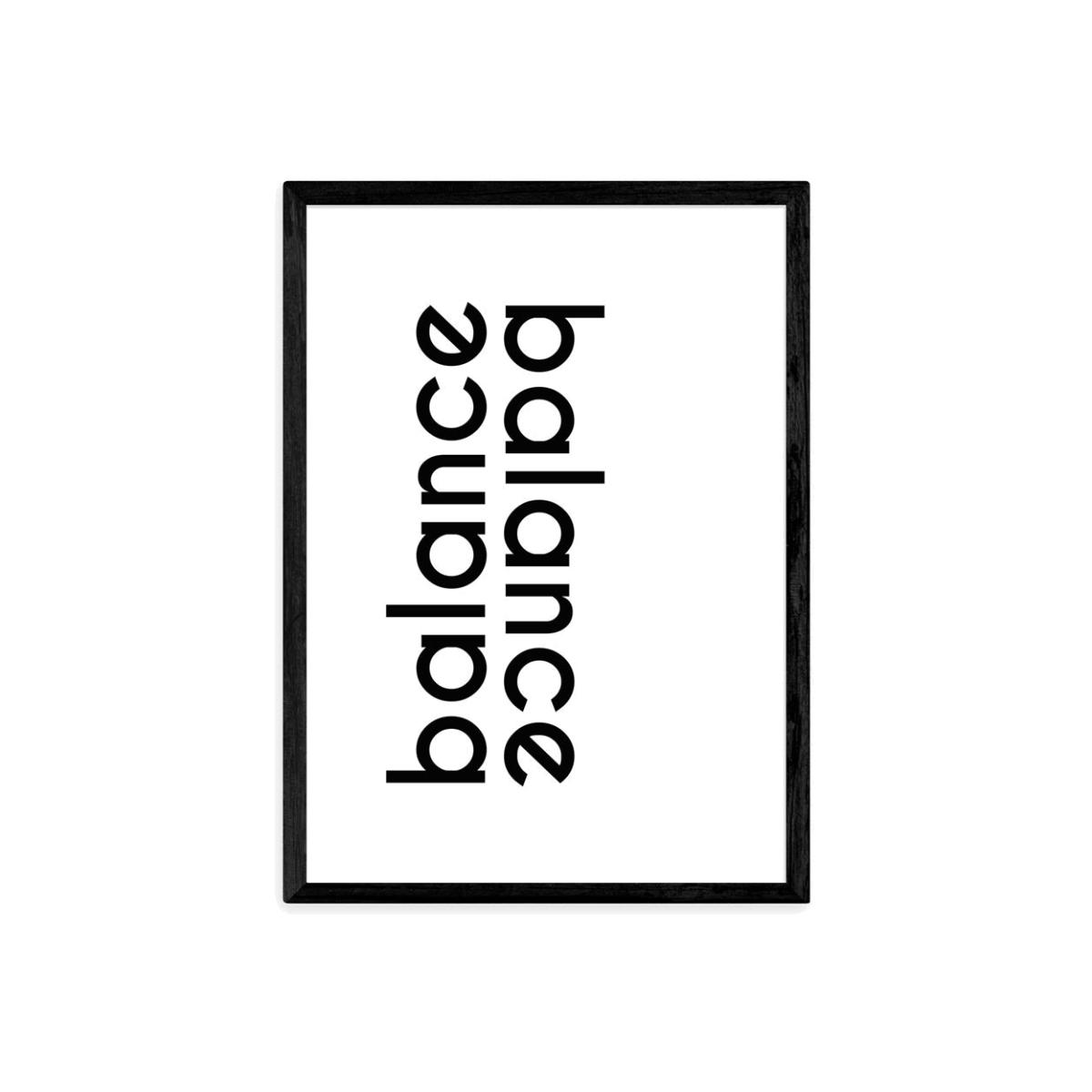 Encourage balance in your home with this stylish and effective typographic print by Inoui. Additional Information: Black Obeche Wood Frame A3 Sized Print Giclee printing process lasting up to 70 years from fading 210gsm acid free archival paper with a digital white border For every print sold a percentage of profit is donated to Cool Earth, a charity combating deforestation in the rainforest Dimensions: H: 51 x W: 39 x D: 7 cm Materials: Solid obeche wood frame, acrylic glaze and 210gsm acid-free archival paper Assembly Required: No Care Instructions:Wipe clean with a soft dry cloth