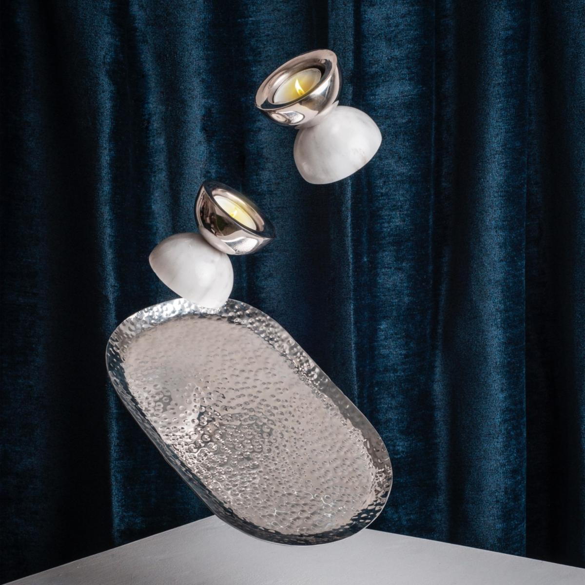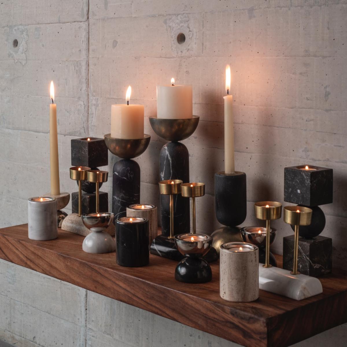 Experience the ultimate in versatility and sophistication with Bruci's Balance candle holders, exclusively designed for the discerning connoisseur of luxury home décor. Whether you prefer the warm glow of traditional tealight candles, the fragrant allure of oil candles, or the hypnotic dance of flames atop an oil burner, these exquisitely handcrafted candle holders offer unparalleled versatility. Each piece is meticulously crafted in our workshop with the finest materials, including nickel-plated brass and your choice of opulent white, black, or travertine marble. The unique design and impeccable craftsmanship of these candle holders make them a standout addition to any interior space, lending an air of refined elegance and timeless sophistication.