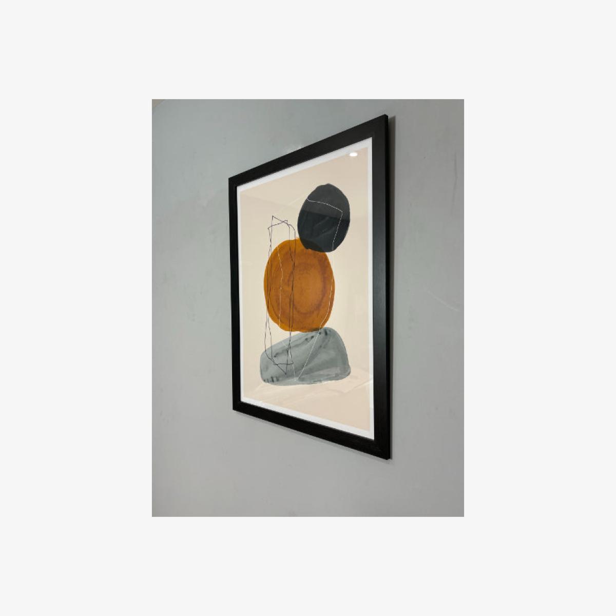 Abstract wall all featuring modern matt black frame Abstract illustration with orange and blue lineand shapes on a cream background. This wall art is complemented with a modern matt black frame. Abstract wall all featuring modern matt black frame Abstract illustration with orange and blue lineand shapes on a cream background. This wall art is complemented with a modern matt black frame.