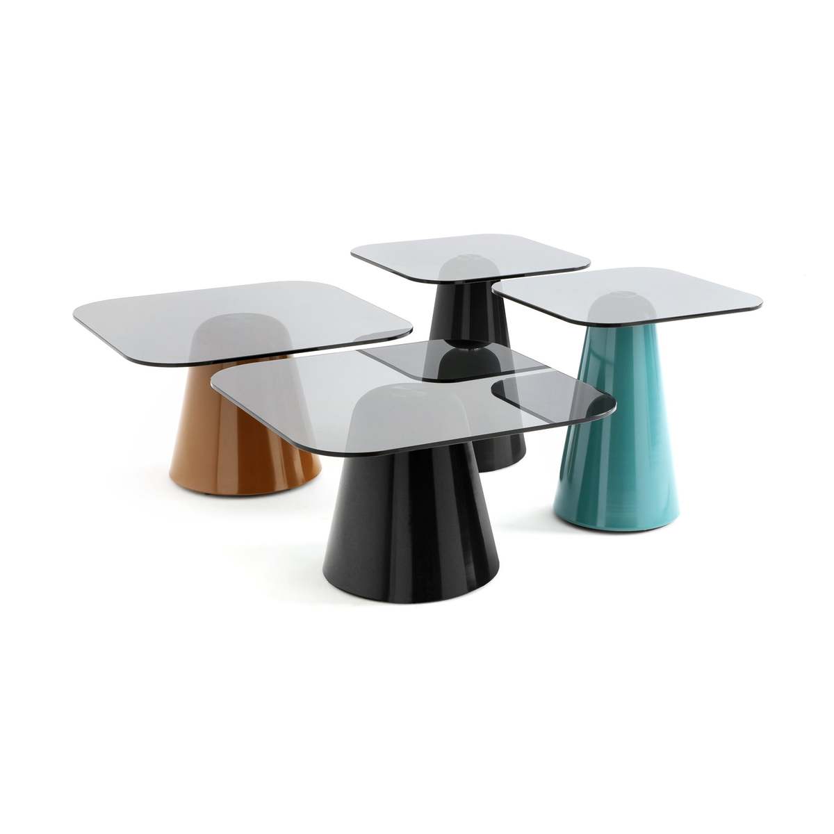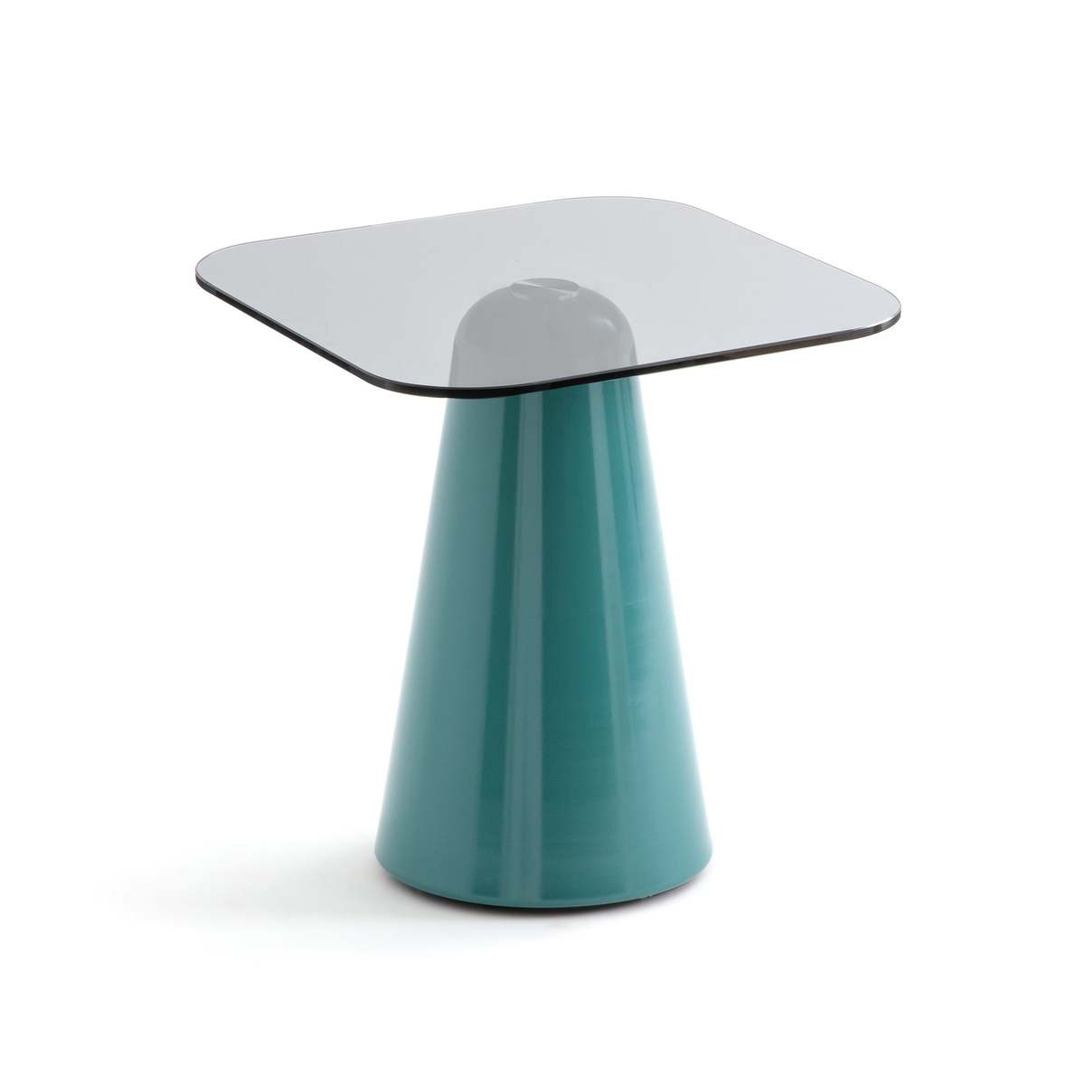 This unusual, compact coffee table will make a stylish statement in your living room. Inspired by '70s decor trends and reimagined for 21st century living, it combines tempered glass with coloured cast aluminium for a fun and functional product.Dimensions:Total: •  Width: 50cm •  Height 51.5cm •  Depth: 50cmDimensions and weight of parcel:2 parcels •  L68.5 x H14.5 x D60.5cm - 13.5kg •  L37 x H57 x D37cm - 2.8kg