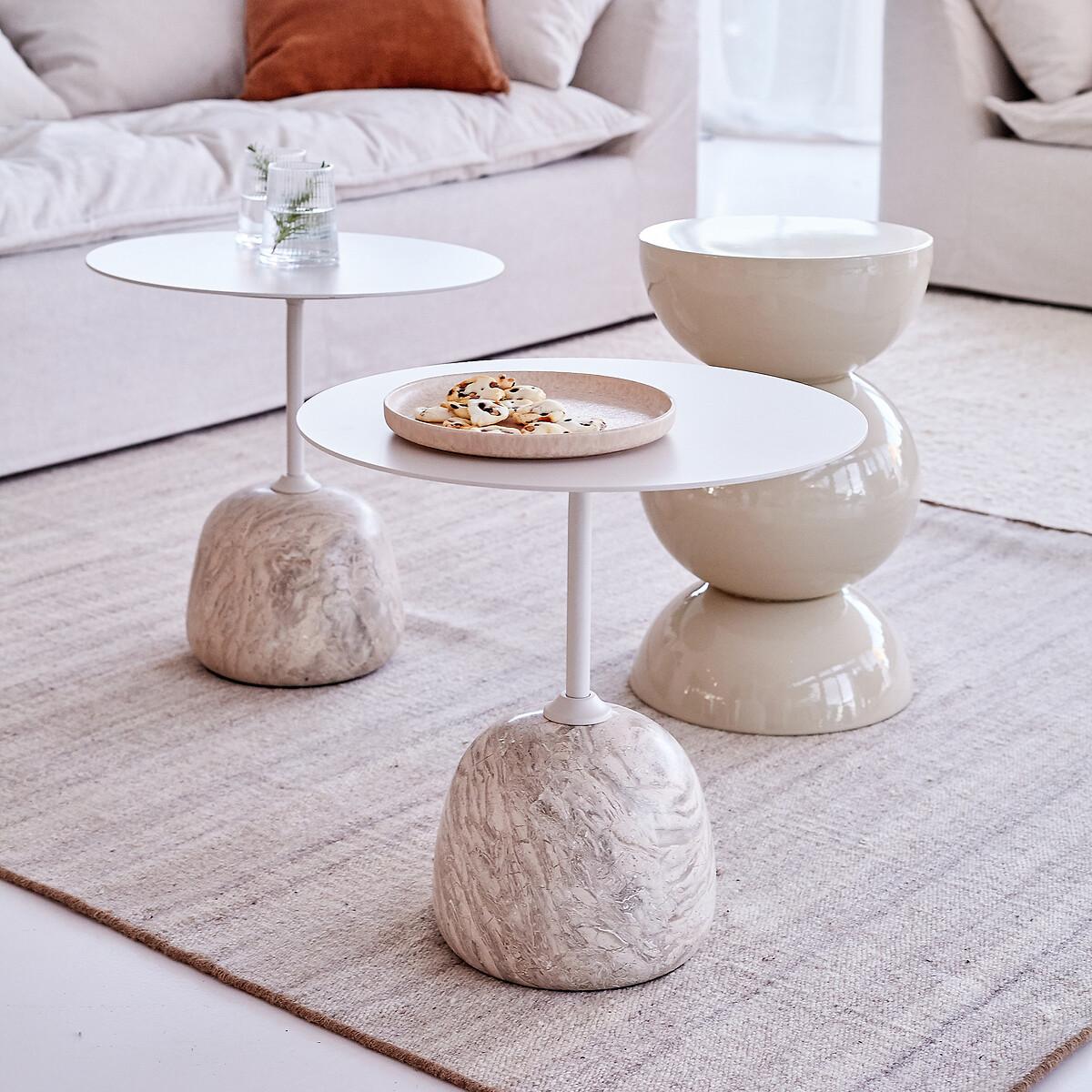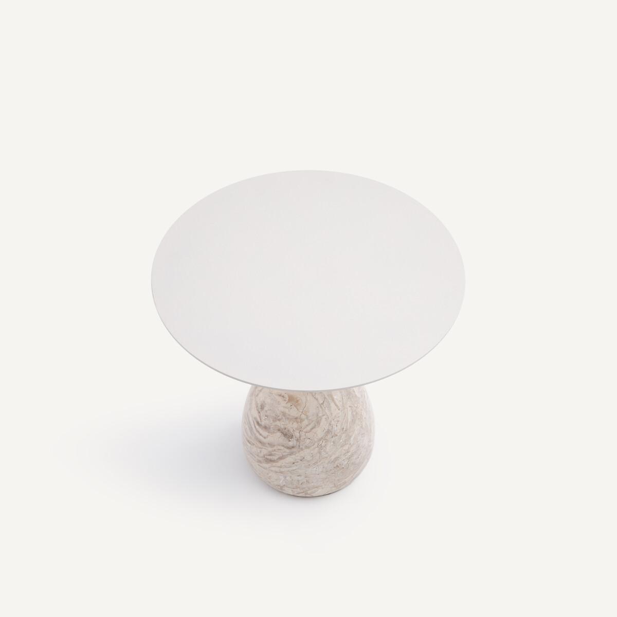 Balance between stability and lightness. Its marble base contrasts with the finesse of its iron top. Inspired by nature, its organic shape is reminiscent of a pebble polished by the waves. Just as each piece of marble is unique, so too is each piece of furniture, telling its own story. A great size for a side table or coffee table, perfect for any room in the home. An AMPM creation. Product Details • Iron table top and post, matt epoxy finish • Marble base. Each piece is unique, the marbling can be more or less marked and the colours varied. Care Advice. Marble is a naturally porous material that is susceptible to stains. To keep it in good condition, follow the maintenance advice below: • Immediately wipe up any spilled liquid with a white cloth dipped in lukewarm water and wrung out. • Maintain your marble regularly with products from our partner Akemi®. • We advise you to use Akemi® Crystal Clean Spray for your daily maintenance and, at least once a month, Akemi® Triple Effect Spray to clean and protect your marble surface.. This will reinforce the initial treatment. • If you want to use products other than those of our partner Akemi®, choose only p. H-neutral cleaners. • Acid, anti-limescale or bleach-based products are not recommended. Dimensions • Diameter: 45cm • Height: 45cm • This product requires assembly. Dimensions and weight of parcel • 1 parcel • L55 x H59 x D55cm. 30kg