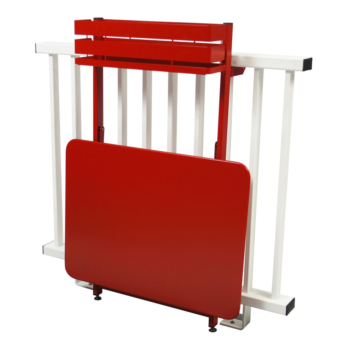 The Balcony table is the latest in the famous Bistro range! This folding table is practical and functional, and can seat 2 people in complete privacy. Its fold-away top makes it very discreet. It is suitable for the height of balconies while ensuring stability and comfort with a clever system of jacks. It is designed to suit everyone, and can also be wall mounted. Ideal for small spaces in towns, it comes in the 24 colours of the colour chart and has a storage bin that can landscape the balcony with some splashes of colour.
