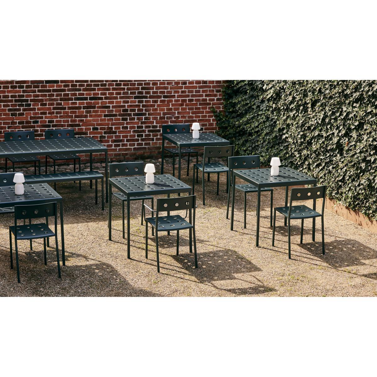 Since the early 2000s, the work of brothers Ronan and Erwan Bouroullec has emerged as one of the most representative of the dynamism of French design. They've created, especially for Hay, an elegant outdoor furnishings collection using steel. The comprehensive Balcony collection includes multiple items that let you compose a dining or relaxation area in your garden or on your terrace, as well as in public places. Oozing aesthetic harmony, the Balcony collection is characterised by a strong graphic signature: Symmetrical holes strewn across the surface of seating and tables. Offering a lightweight visual, these multiple holes emphasise the volumes and cavities, asserting the collection's graphical identity. They also create a play of light, projecting shadows onto surrounding surfaces. The particularly straight lines of the furniture are softened by the rounded edges and multiple holes. These holes also play a practical role: They make the structure physically lighter, meaning the furniture is easier to handle and allowing water to run off it. Each piece in the Balcony collection is made using powder-coated steel, with a double anti-corrosion treatment providing high resistance against bad weather. The chair, chaise longue, armchair, and lounge chair can be stacked (by 12). For optimal comfort, you can accessorise all of the Balcony chairs with seat cushions, sold separately.