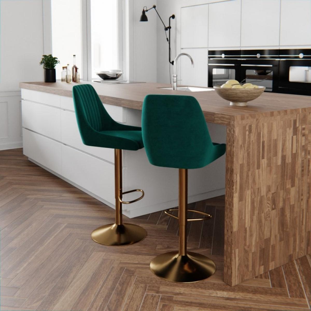 I love this stool because of its bold teal velvet upholstery paired with the luxe brass leg, which creates a striking yet sophisticated look. It works well in contemporary, eclectic, or even vintage-inspired interiors-adding a splash of colour and a touch of glamour. From a styling perspective, it’s versatile enough to serve as a statement piece at a breakfast bar or in a home bar setup, especially when paired with other brass accents or rich textures. Practical tips include balancing its bold colour with neutral surroundings or complementing other teal or jewel-toned accessories for a cohesive scheme. Its adjustable height makes it perfect for versatile use and tighter spaces, giving a chic yet functional touch to any kitchen or entertaining area.