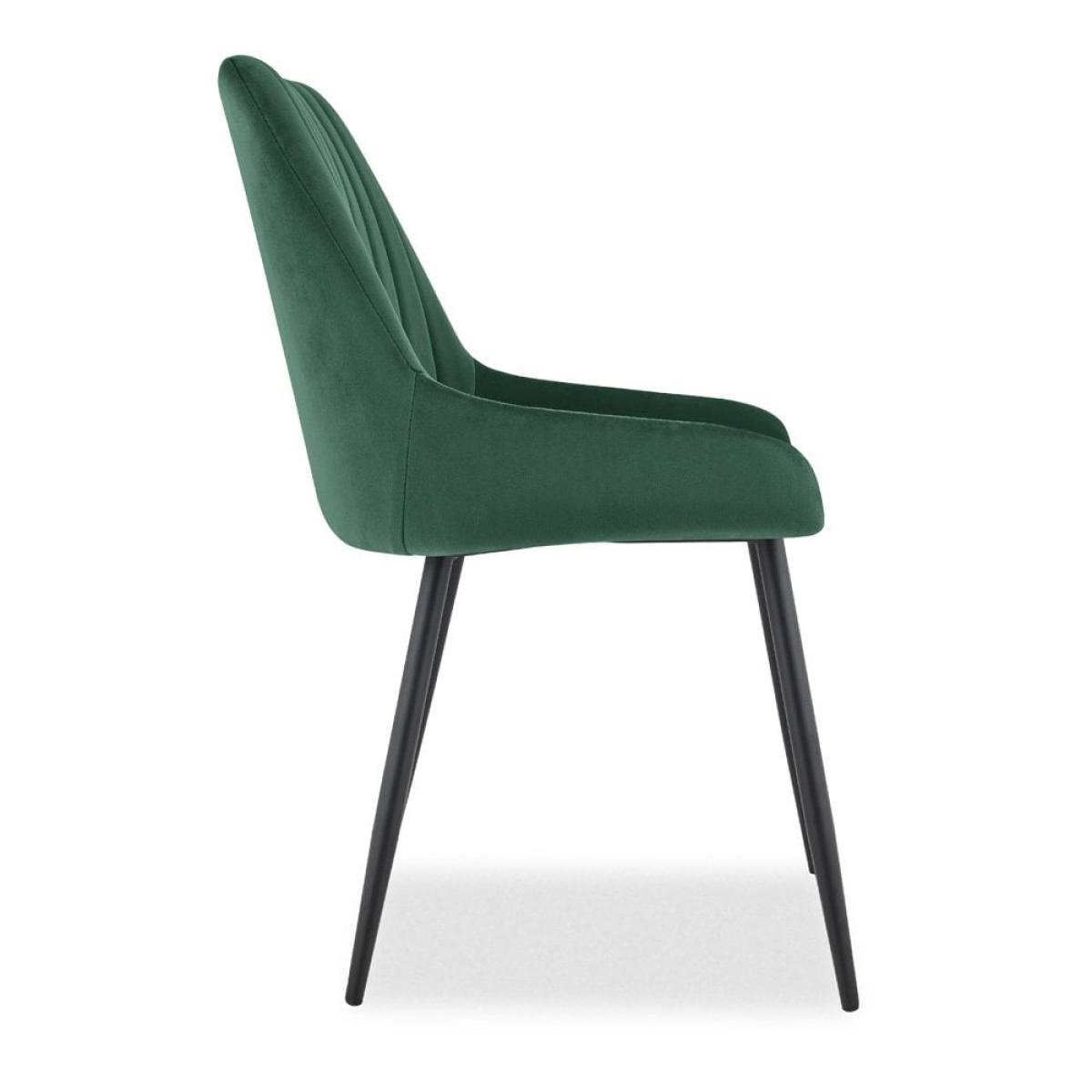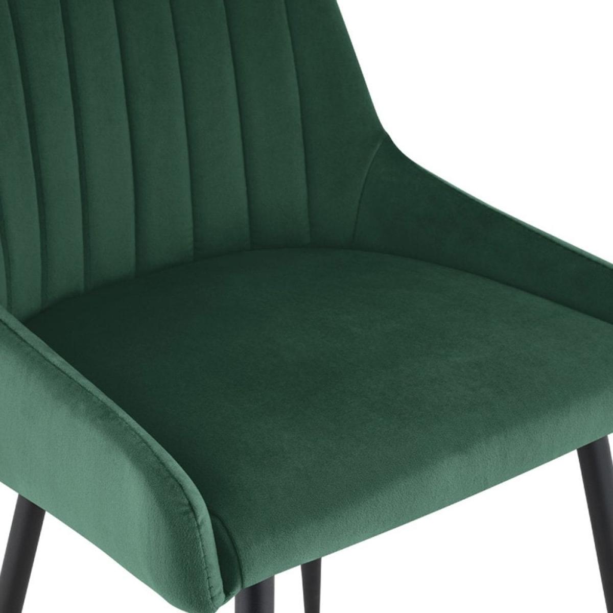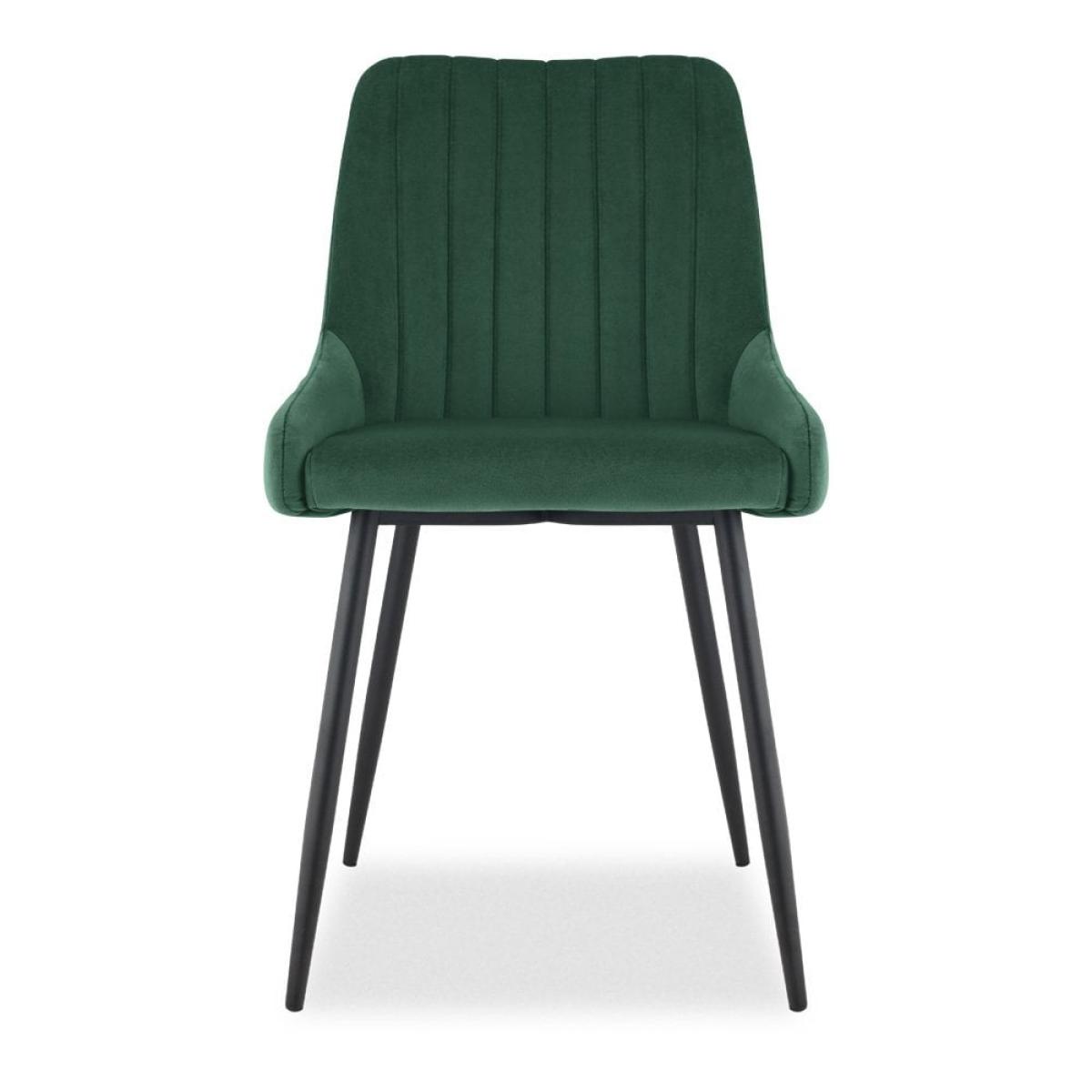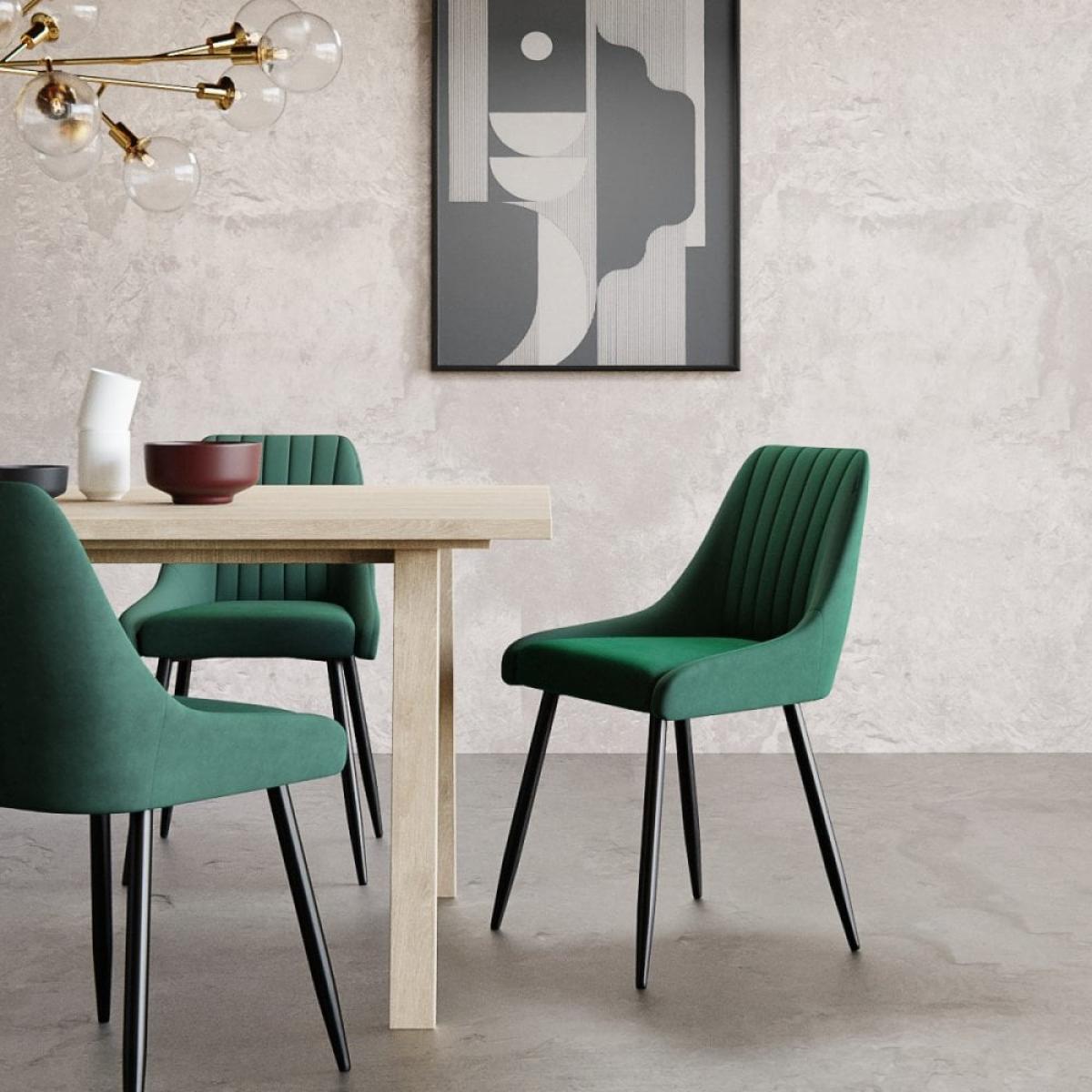 I love how this chair's rich forest green velvet instantly elevates a dining space, adding a touch of luxe without feeling overdone. Its sleek, modern silhouette makes it versatile-perfect for contemporary interiors, but it can also bring a sophisticated edge to more eclectic or vintage-inspired rooms. When styling, consider pairing it with neutral tones on your table and accessories to let the deep green stand out, or go bold with contrasting colours for a more striking look. Practical tips include using fabric protectors to maintain the velvet’s lush texture and mixing and matching it with different leg finishes or upholstery styles to create an inviting, eclectic dining area.