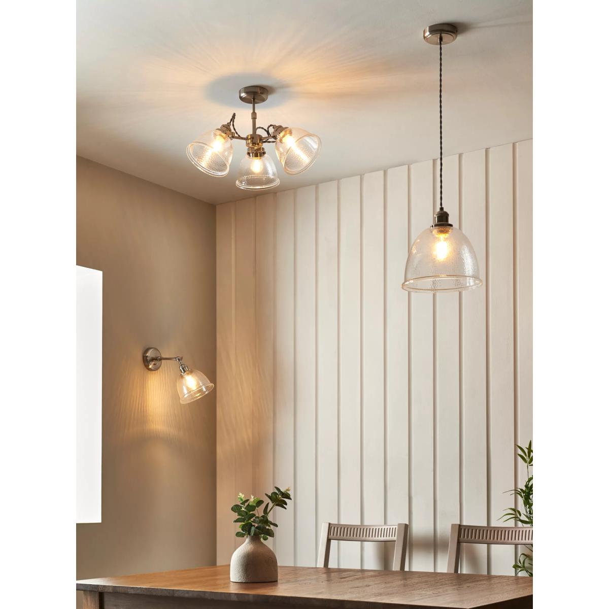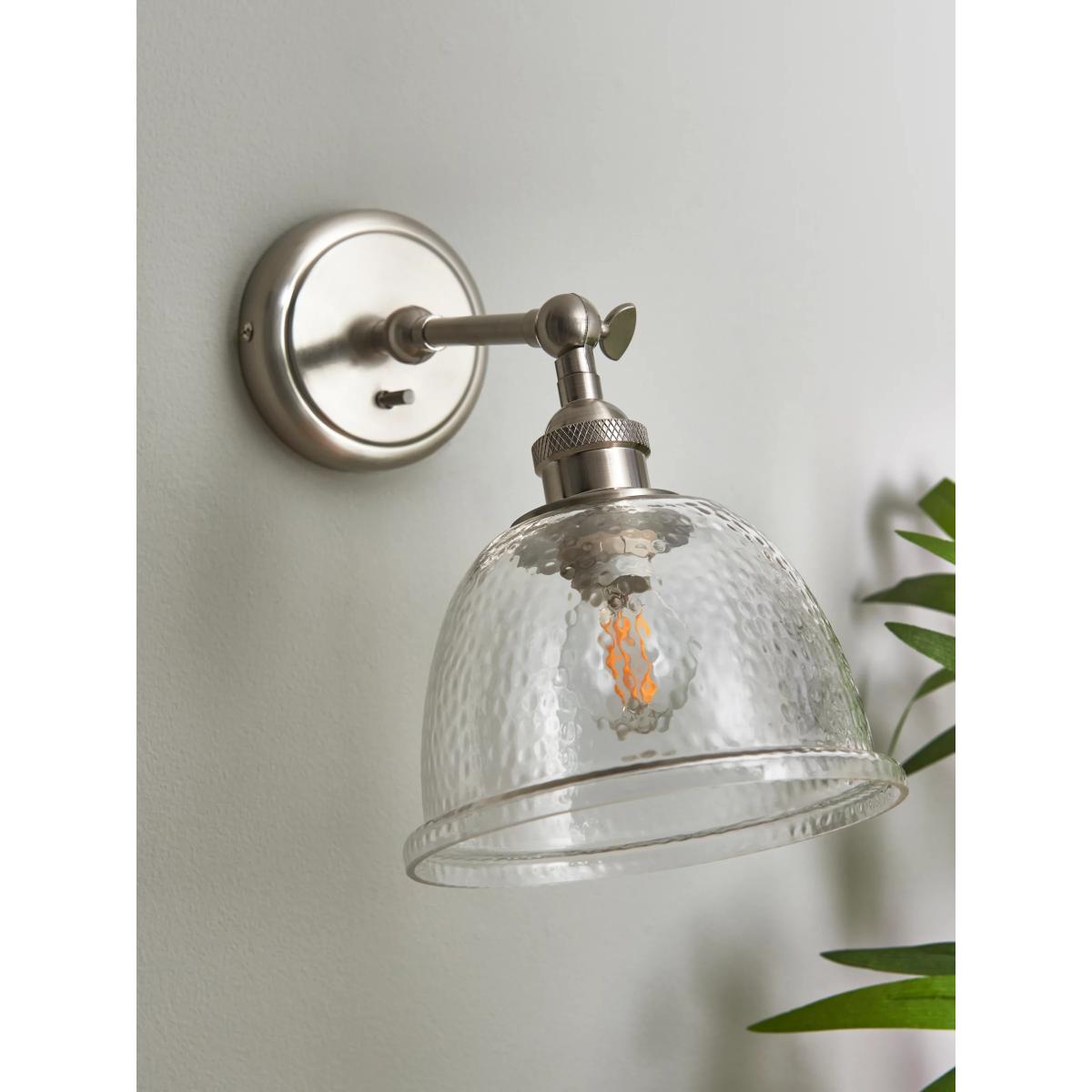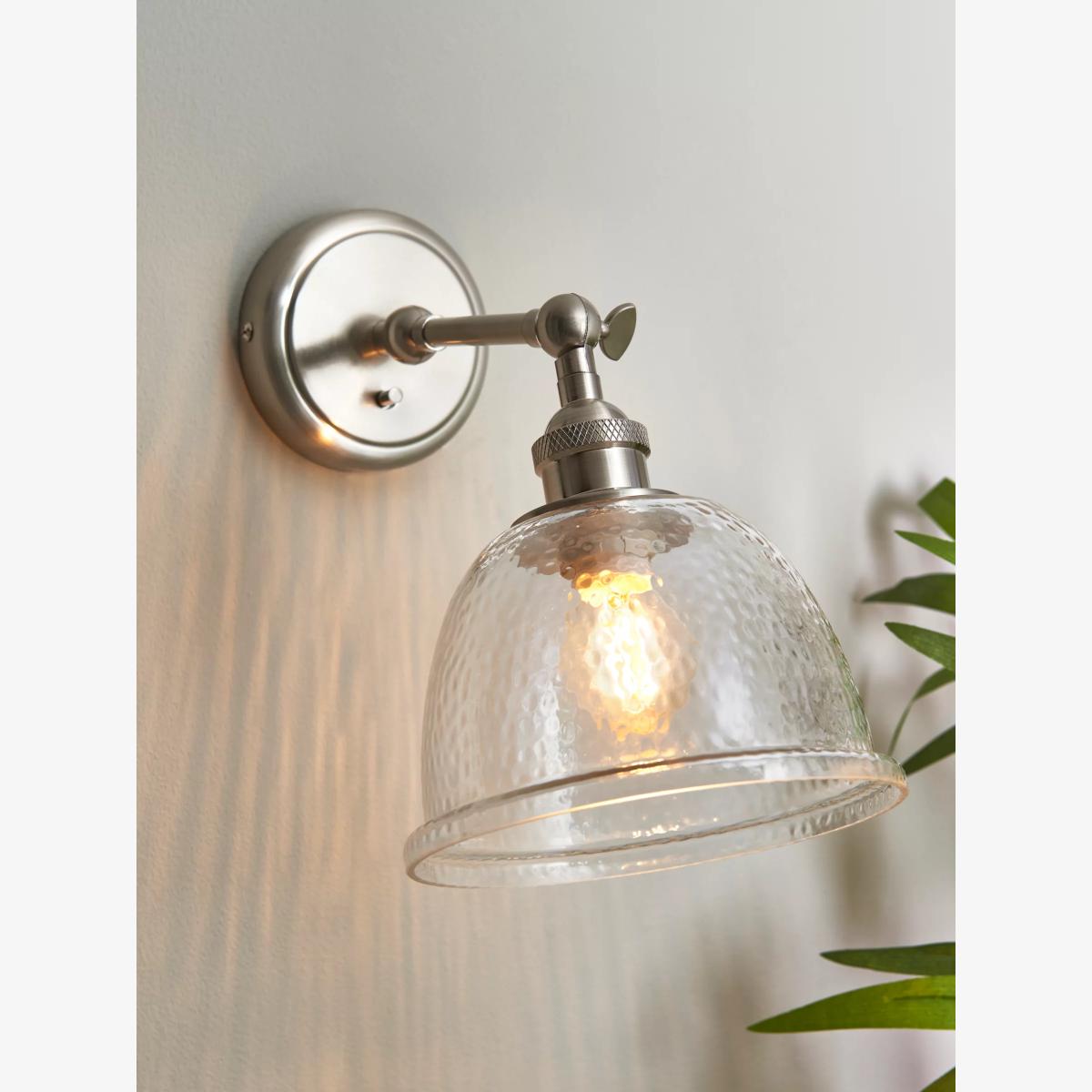 This Baldwin wall light is designed with a tilt-mechanism, making it easy to direct light exactly where you need it. The dome-shaped shade is made from textured glass and will cast a warm wash of light over your living space, whatever your interior.
