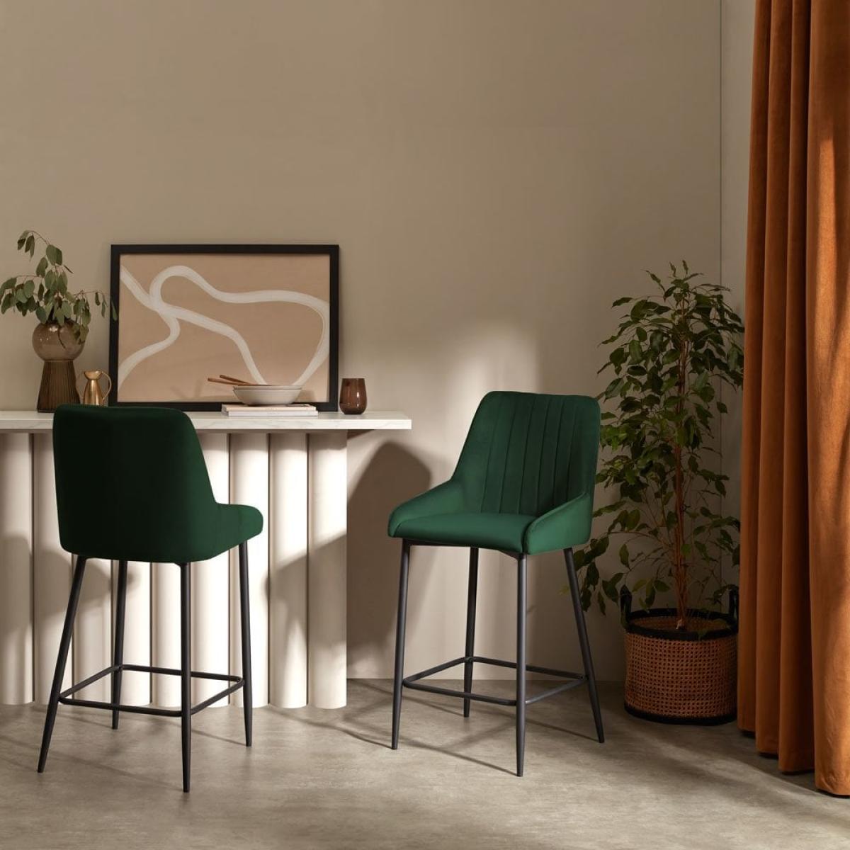 I love the Baldwin in forest green velvet for its versatile elegance-it adds a touch of richness to various interiors without overpowering the space. Its plush velvet finish paired with sleek black legs makes it suitable for modern, eclectic, or even more traditional settings when styled with complementary colours and textures. As a practical tip, it works beautifully as a statement piece at a breakfast bar or a contemporary home office. To keep it looking its best, consider mixing it with lighter tones or natural woods around your room to balance the depth of the green velvet, and avoid placing it in excessively damp environments to preserve the fabric’s quality.