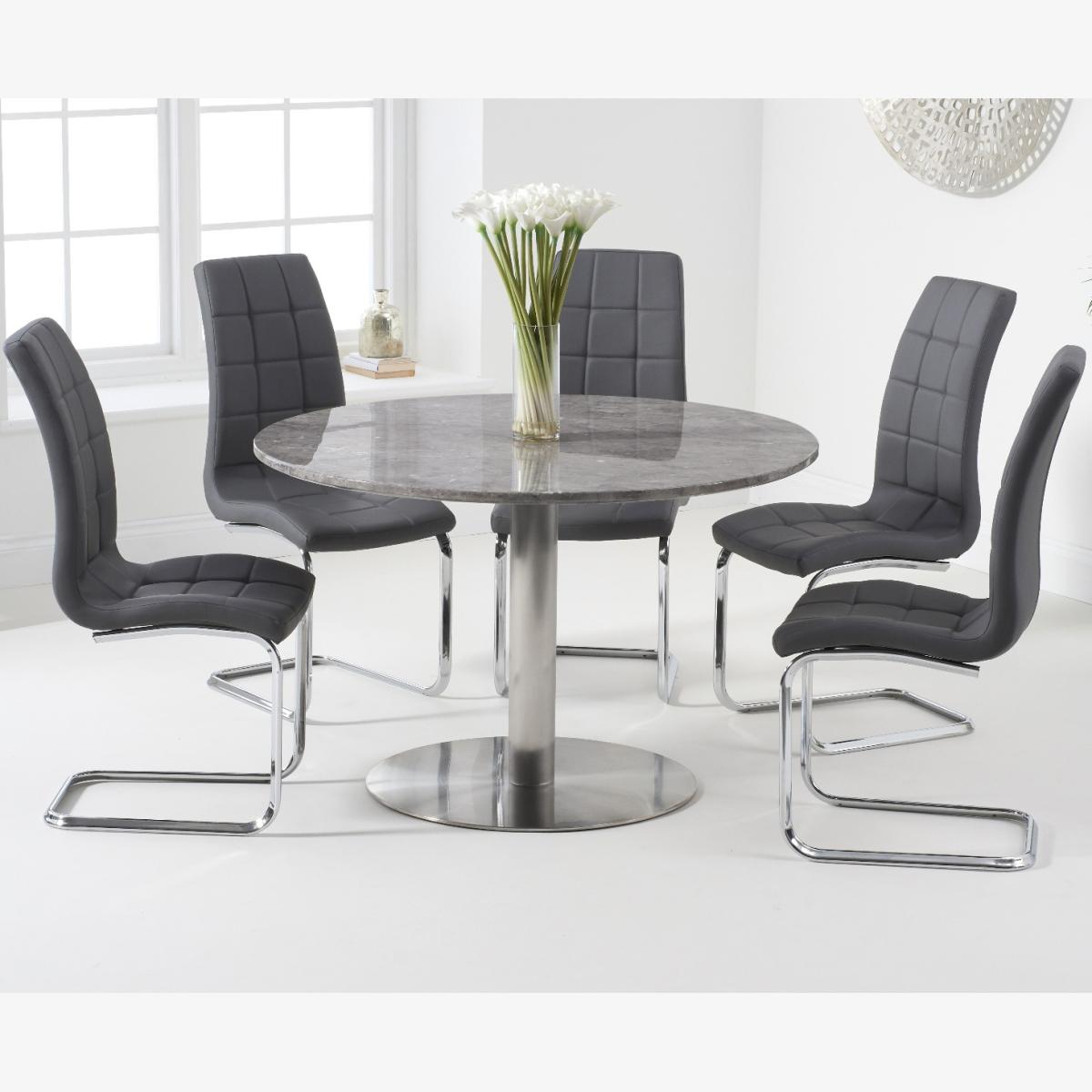 Bali 120cm Round Grey Marble Effect Dining Table With 2 White Lorin Dining Chairs