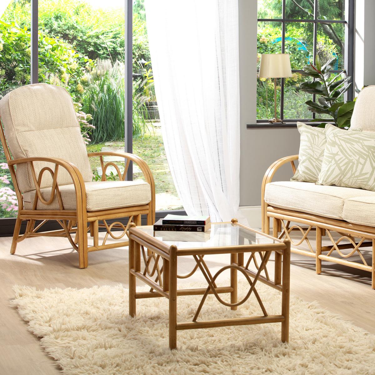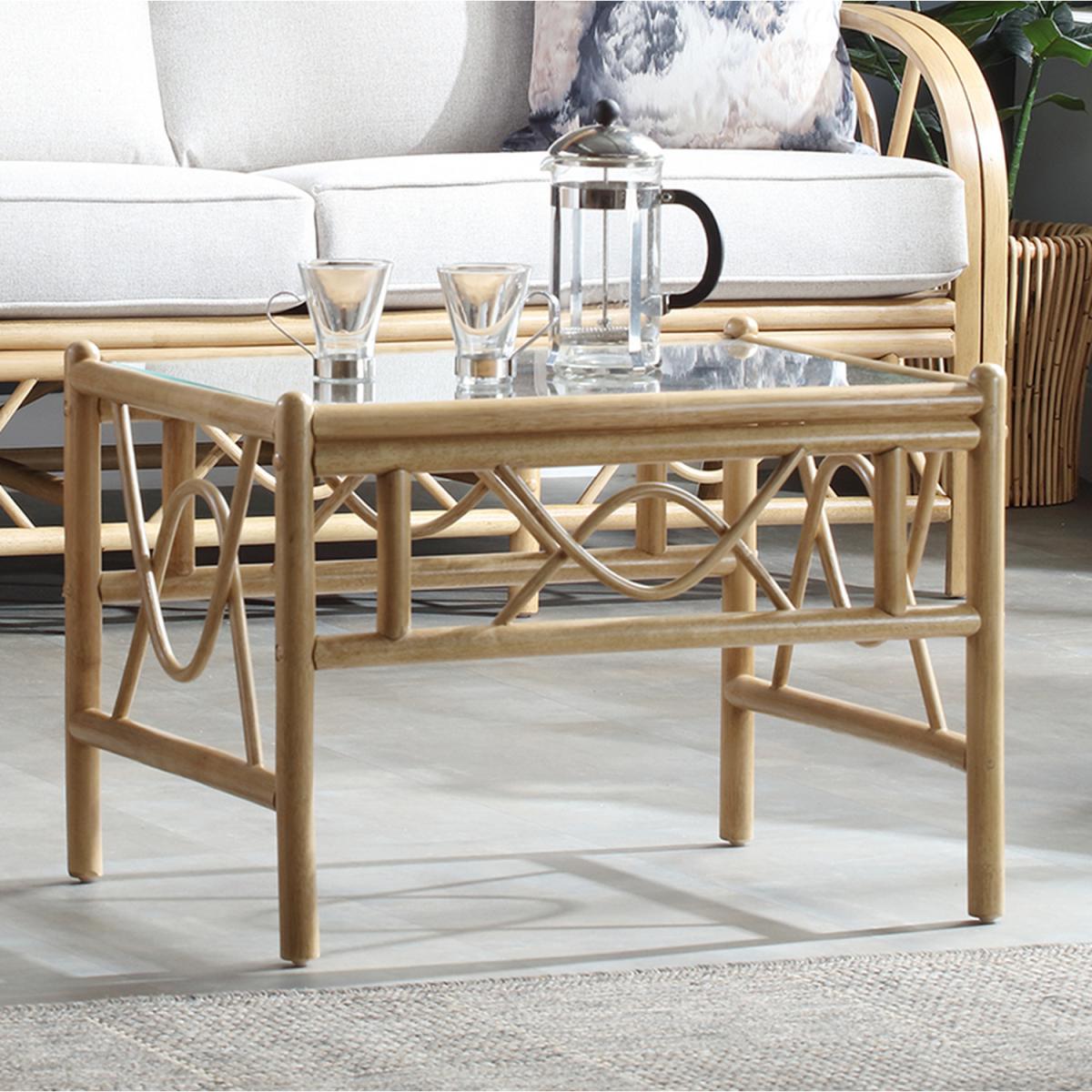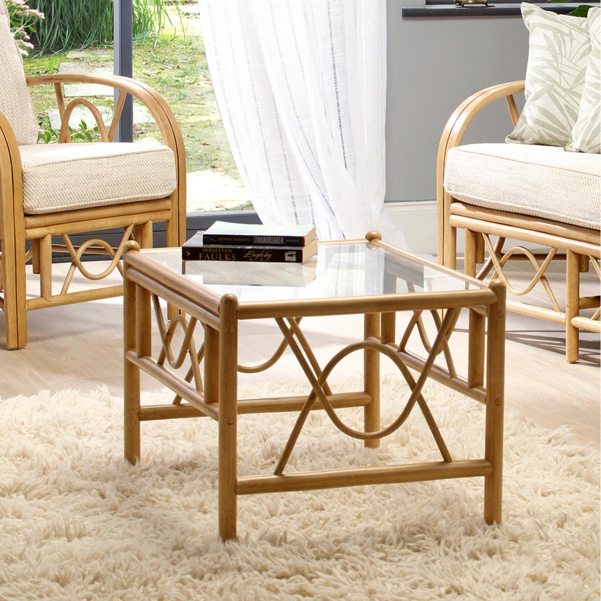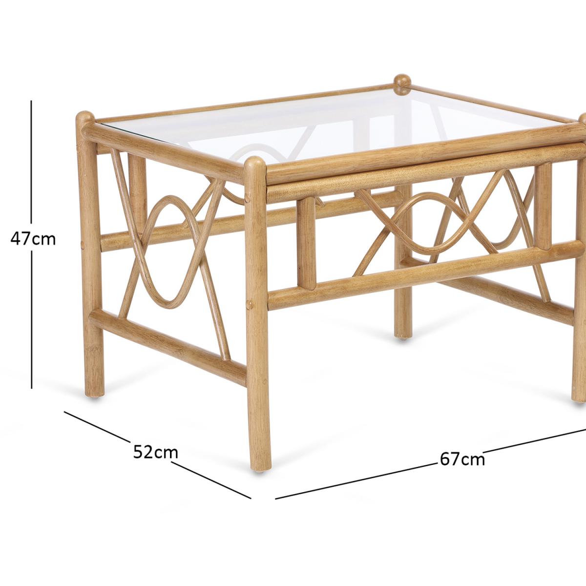A sustainable natural rattan coffee table with 5mm toughened glass top and double pole frame structure