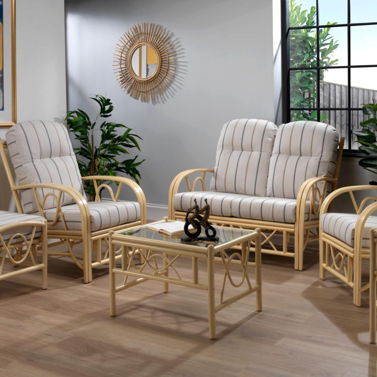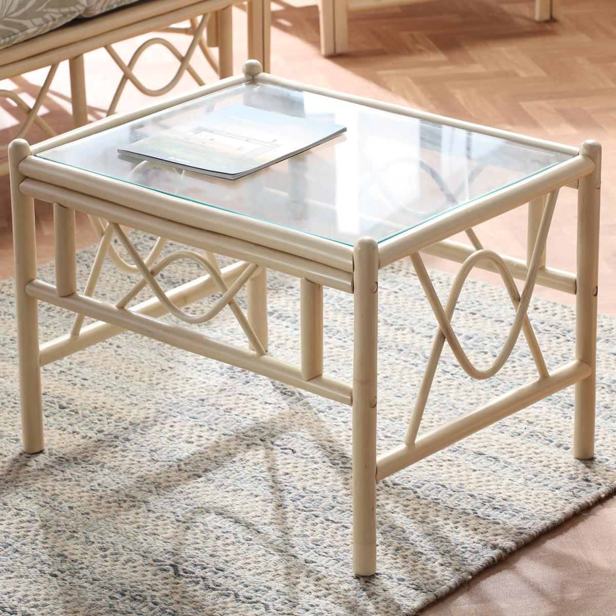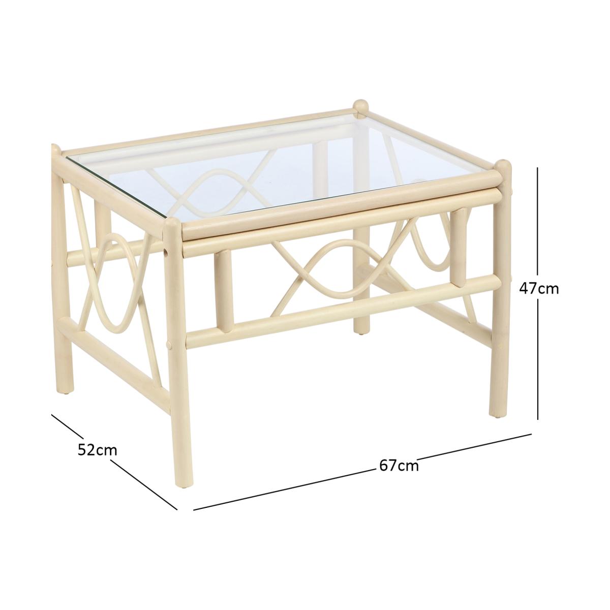 A sustainable natural rattan coffee table with 5mm toughened glass top and double pole frame structure