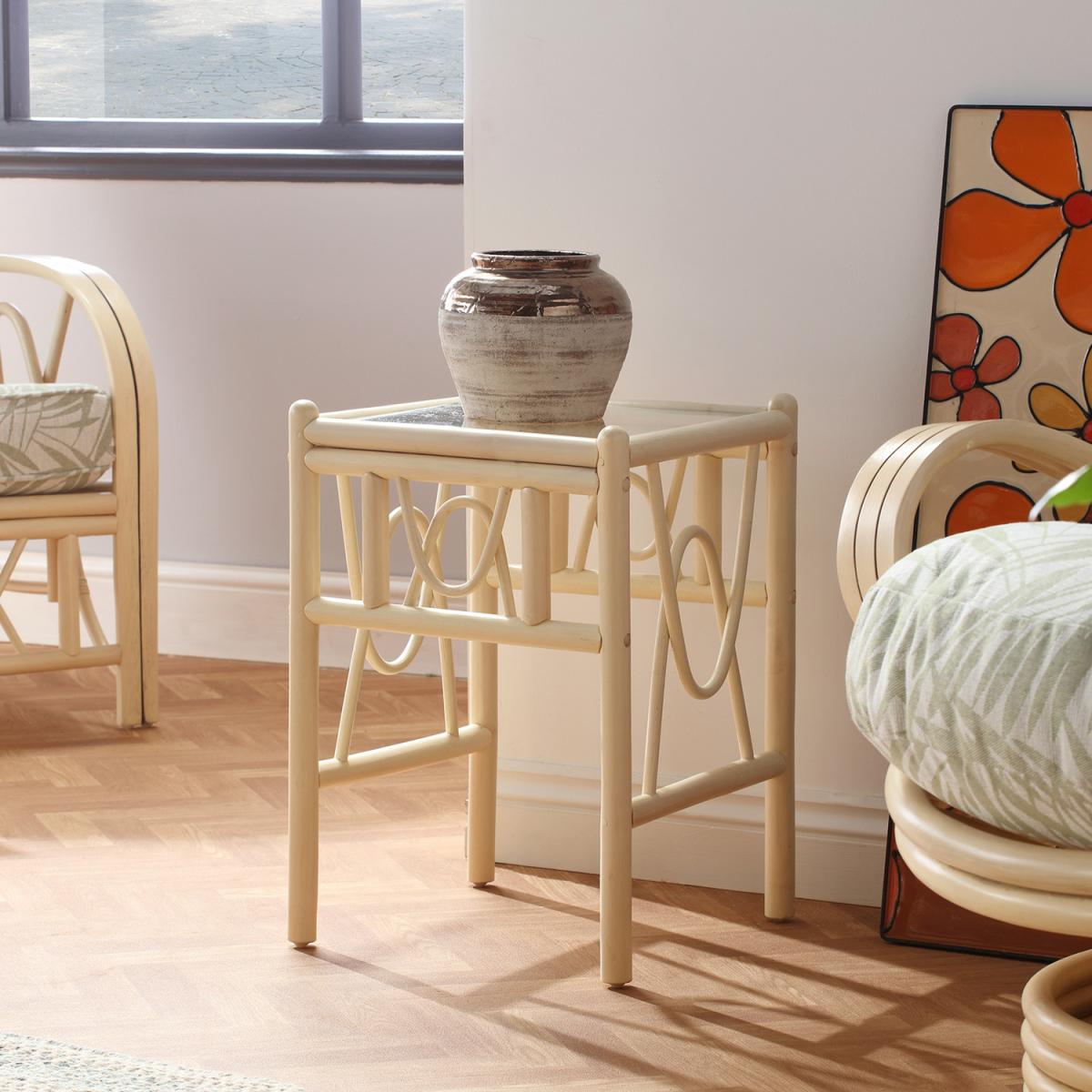 Bali Cane Side Table Natural Wash - Ivory