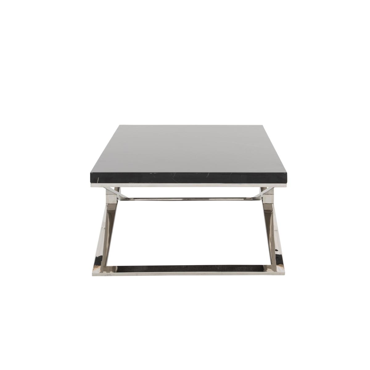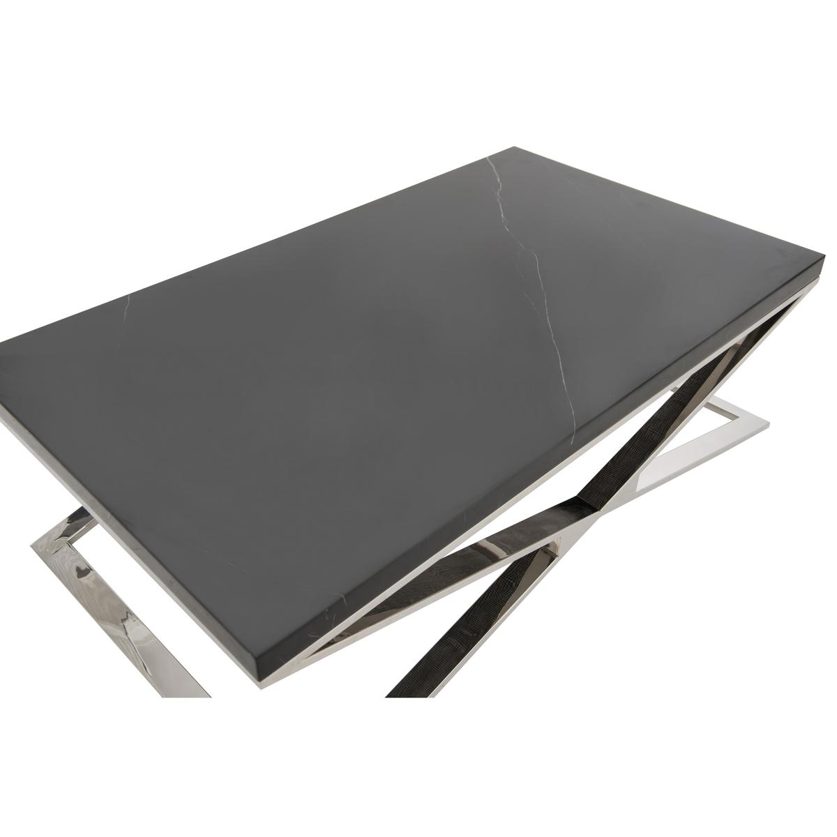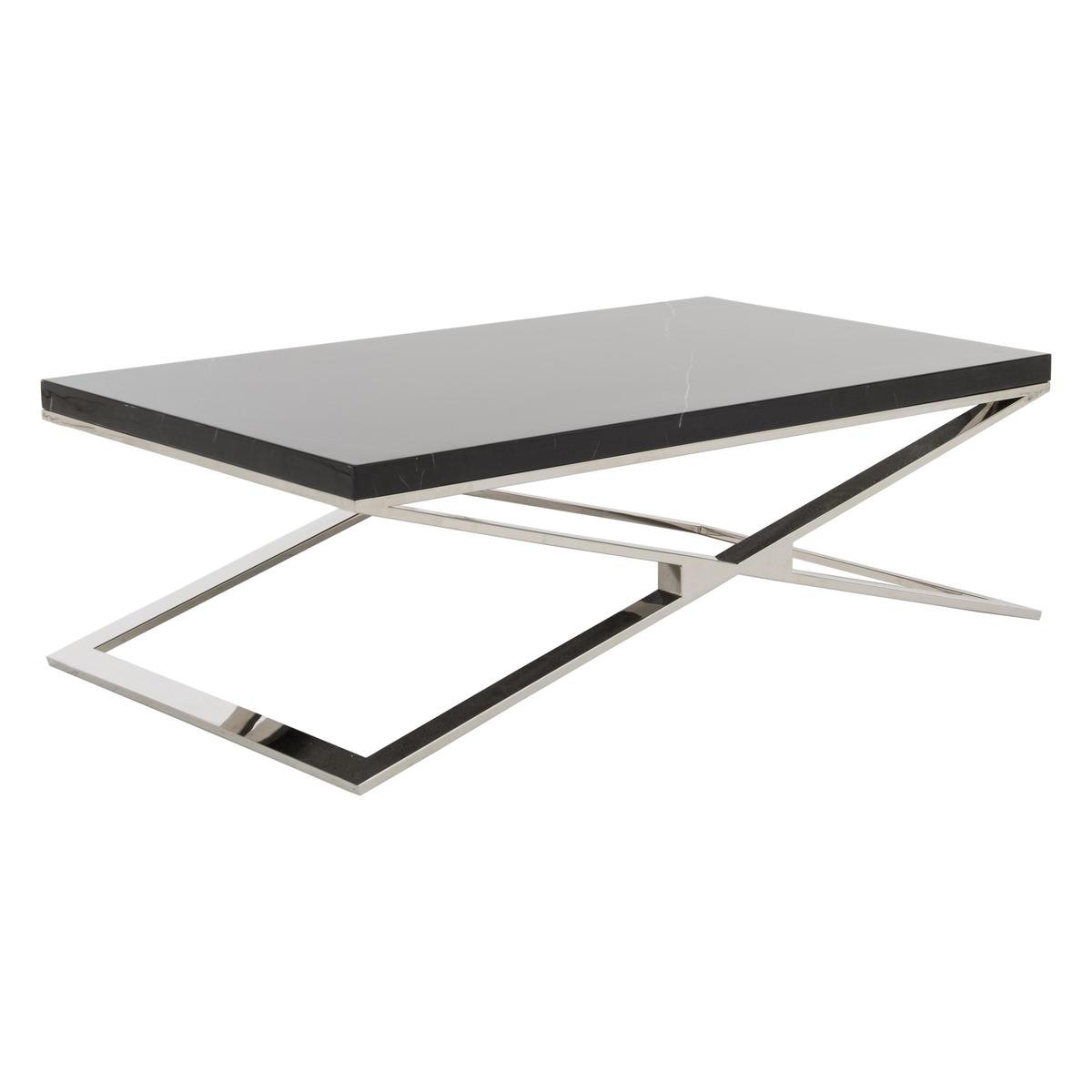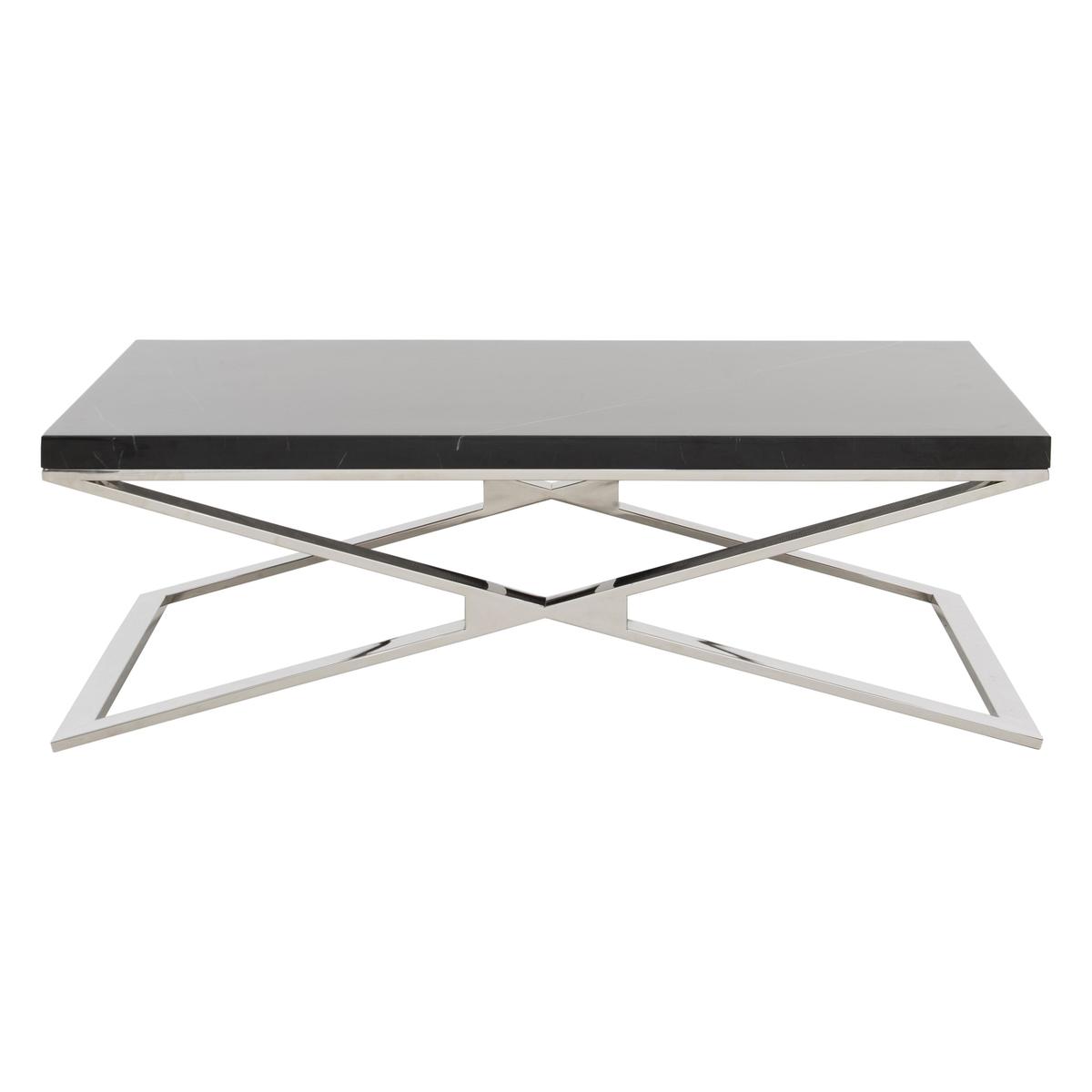 Cool black marble with subtle white veining. Polished stainless steel. Contemporary geometric shapes. It all adds up to the glamorous Bali range of occasional tables, beautifully made and guaranteed to add a touch of luxury to any interior, modern or traditional. The range includes a coffee table, a lamp table and a console table – mix and match for a coordinated stylish look. Stylish marble coffee table adds a touch of glamour to any room. Table top is real black marble with authentic white veining. Hardwearing clear lacquer finish enhances the beauty of the marble. Distinctive polished, stainless steel cross-shaped frame. Sophisticated contemporary design with a high-end, luxury feel. Suits both modern and traditional interiors.