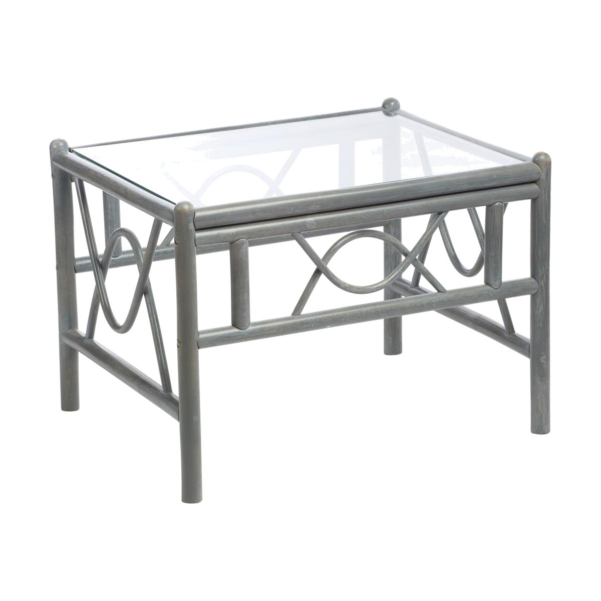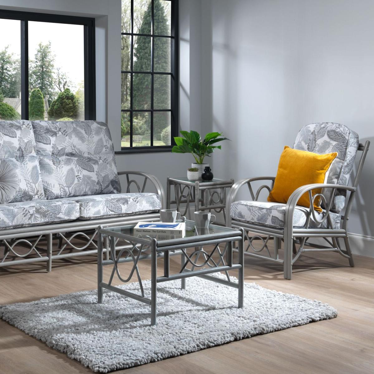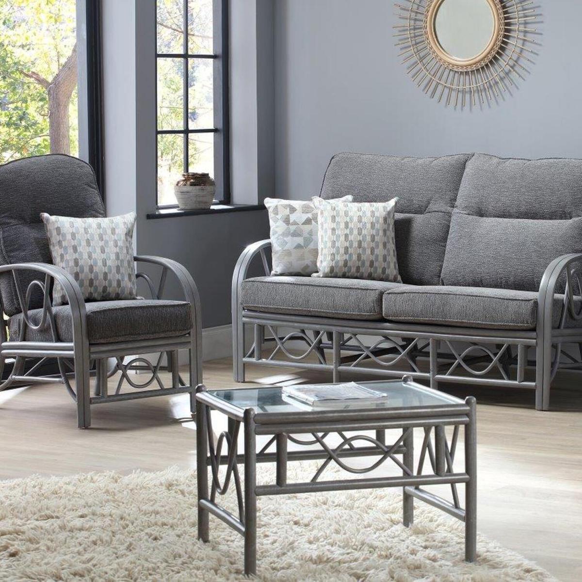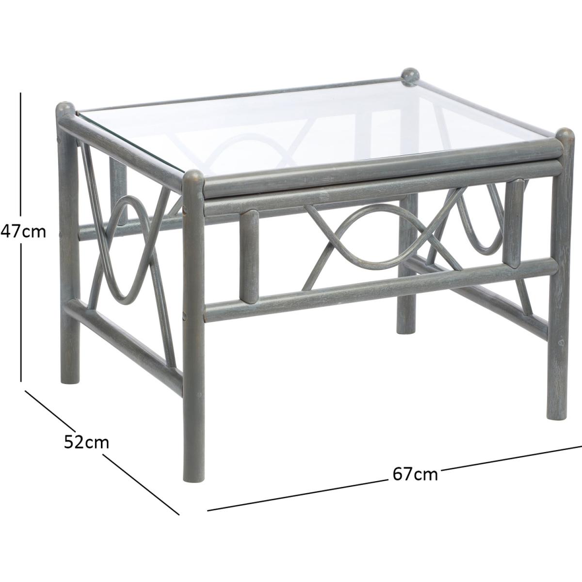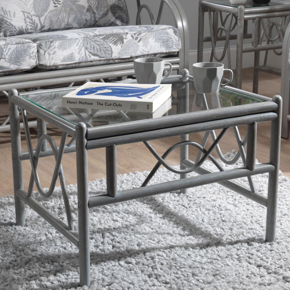 A sustainable natural rattan grey coffee table with 5mm toughened glass top and double pole frame structure