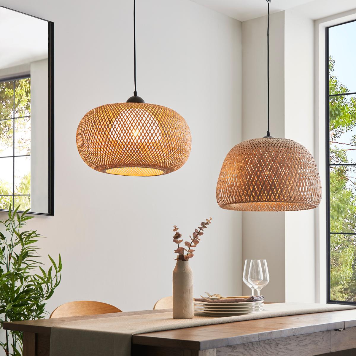Bring the beach vibes home with this beautiful natural raffia twine pendant. Intertwined to form a elongated sphere shape this product is also dimmable. Completing that ever popular relaxed, natural design style this pendant would look just as at home in a kitchen/dining space as it would a bedroom or living room. Also available in alternative shape.
