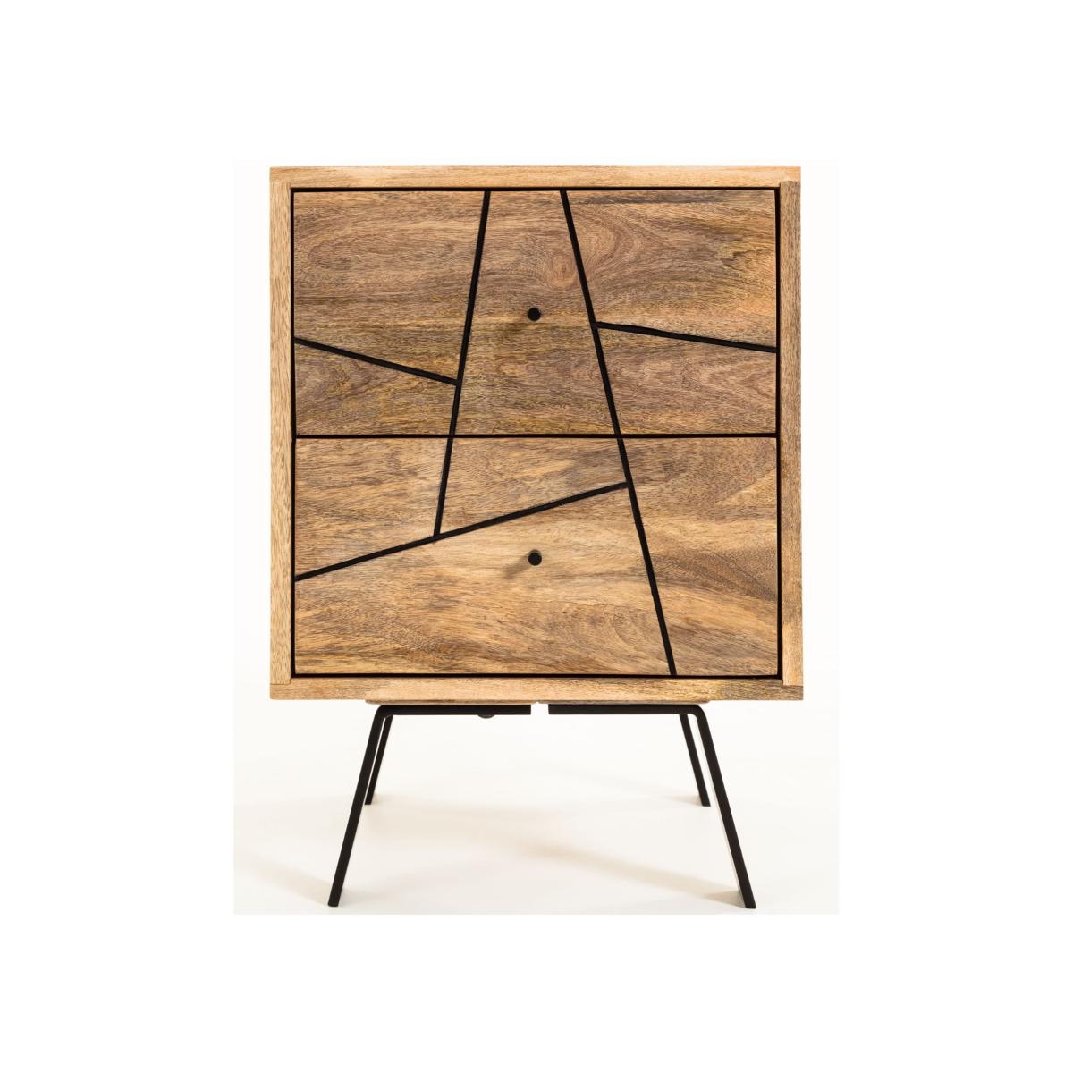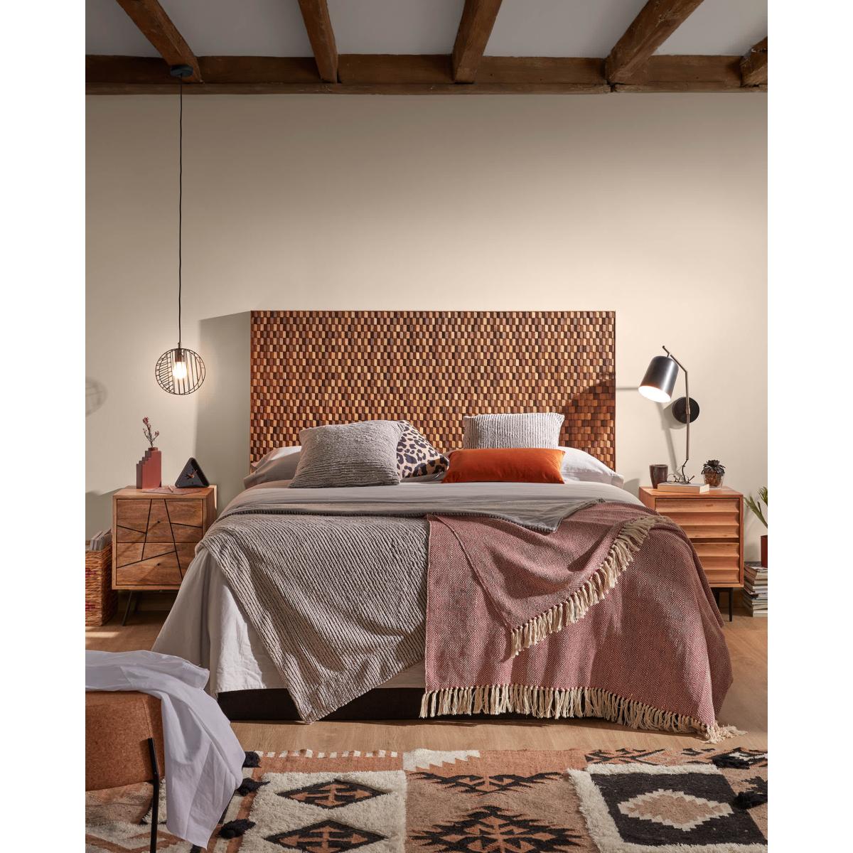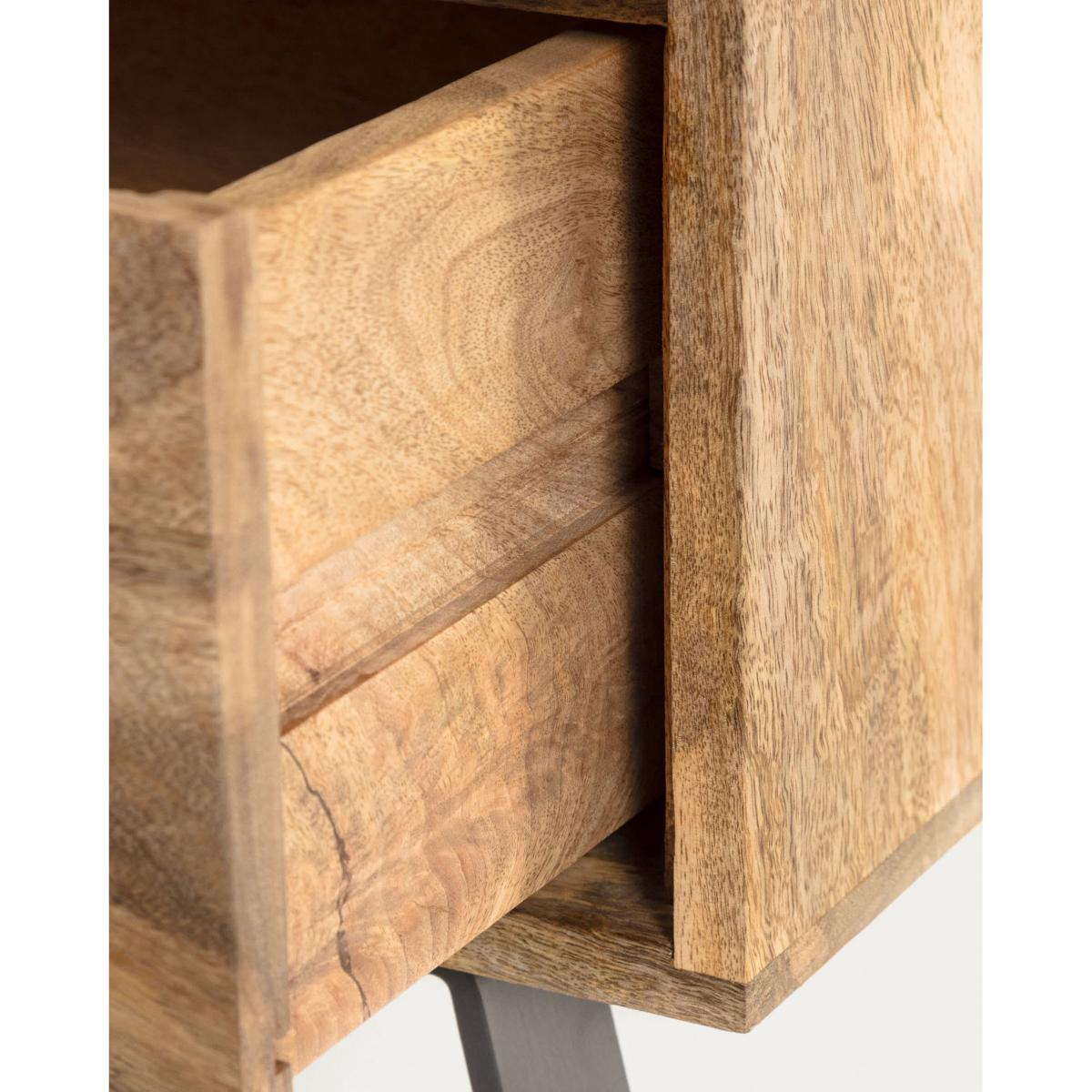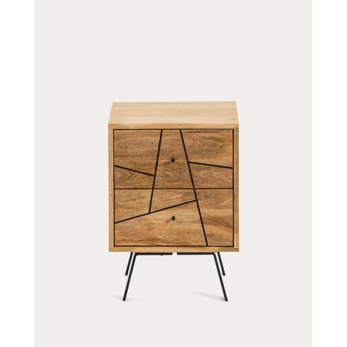 The structure of the Balia bedside table is made of solid natural mango wood. It is handmade, including decorative metal details embedded in the drawers. The legs are also made of metal and have the same matt black finish. Each Balia beside table is unique thanks to the grain of the wood. If you wanted an exclusive piece of furniture, you've found it.