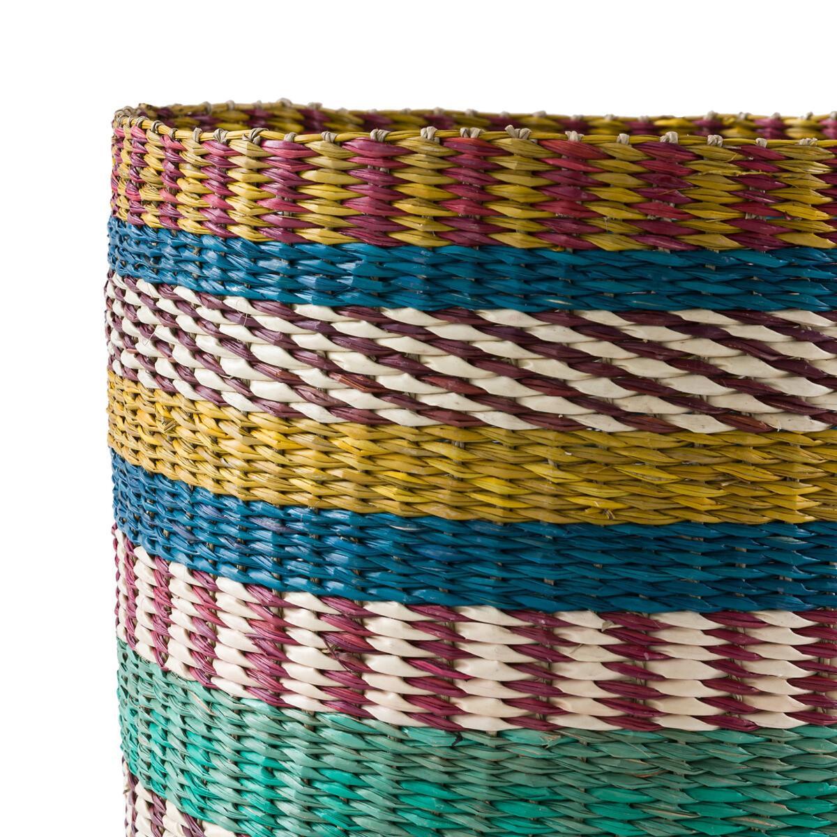 Bright colours and rhythmic patterns. In addition to being pretty and colourful, this storage basket is practical and functional, designed in a natural fibre, this accessory allows you to have a tidy bathroom, office or bedroom!