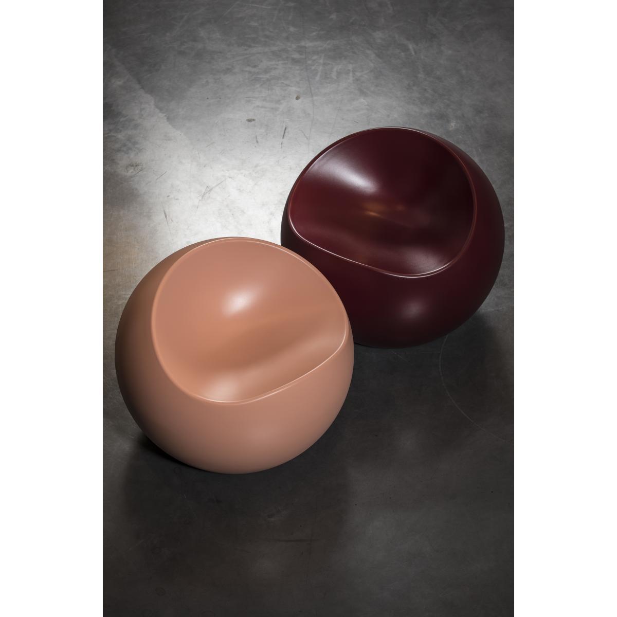 A pop and fun ball to sit down and relax in style. With its round, essential and modern shapes, the Ball Chair pouf is ideal for creating a very trendy lounge corner, both indoors and outside. Guaranteed to impress around a coffee table! Ball Chair is available in a variety of colours. This pouf has a wide curved seat and a backrest which ensures it comfort comparable to that of an armchair. Functional, this pouf s resistant and very light: it is easily transported from the lounge to the terrace. Made from recycled ABS, it is covered in a superior quality lacquer (resistant to impacts, scratches, water and UV). To create a very chick leisure collection, you can combine Ball Chair with the coffee table from the same collection.