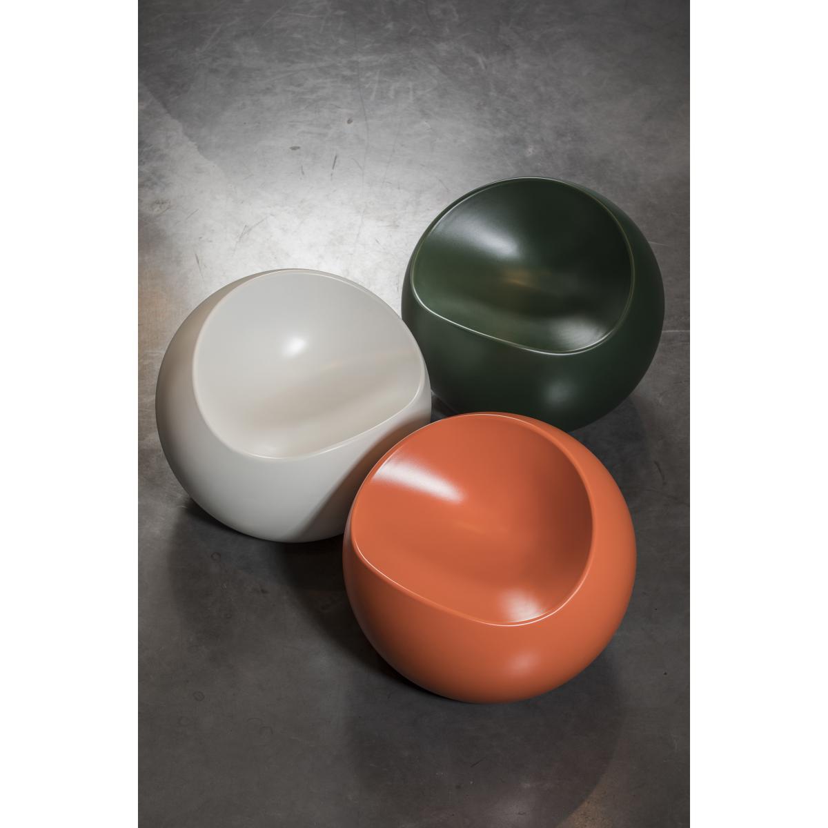 A pop and fun ball to sit down and relax in style. With its round, essential and modern shapes, the Ball Chair pouf is ideal for creating a very trendy lounge corner, both indoors and outside. Guaranteed to impress around a coffee table! Ball Chair is available in a variety of colours. This pouf has a wide curved seat and a backrest which ensures it comfort comparable to that of an armchair. Functional, this pouf s resistant and very light: it is easily transported from the lounge to the terrace. Made from recycled ABS, it is covered in a superior quality lacquer (resistant to impacts, scratches, water and UV). To create a very chick leisure collection, you can combine Ball Chair with the coffee table from the same collection.