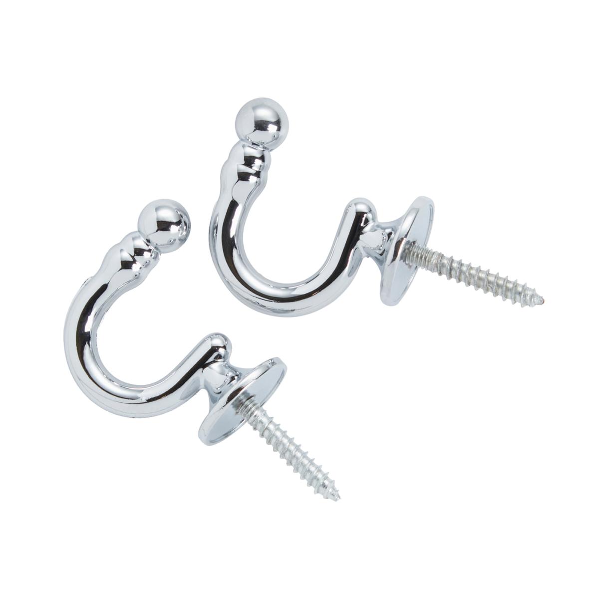 * Includes 2 x hooks with fixings* Simple, complementary design* Available in a choice of colour finishes Simple in design to compliment any room style, these antique-styled curtain hooks are available in a choice of finishes and will securely hold your tiebacks in place for an elegant and neat finish.