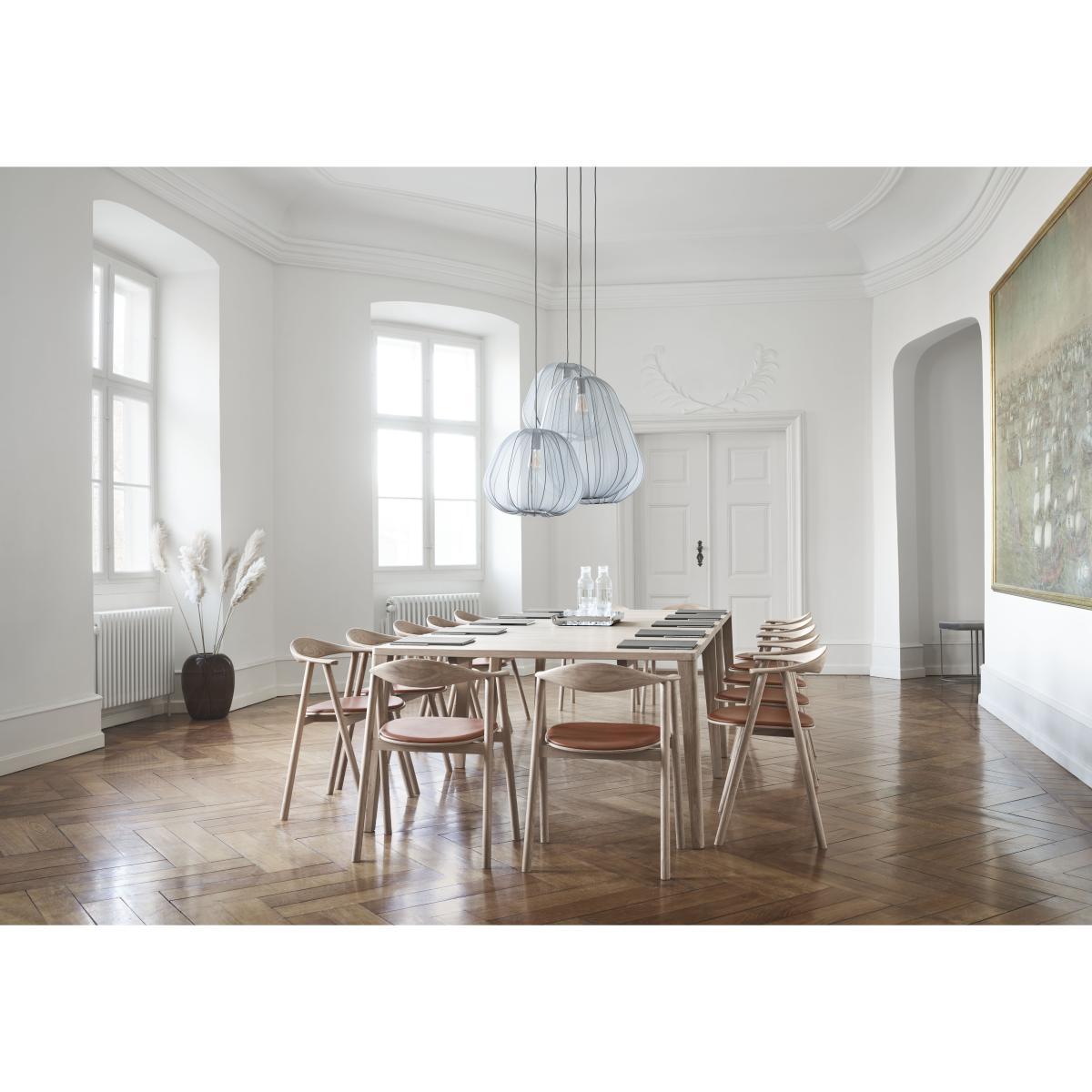 The Balloon pendant consists of translucent elastic fabric stretched over a thin metal frame giving rise to an evanescent volume. Through transparency, the frame forms delicate vertical geometric patterns. The Balloon pendant dresses the space with its pure, ethereal, original presence. The translucent material filters the light for warm, comfortable, soothing lighting. German designer Meike Harde explains: "My design objects are characterised by their delicate structures, a certain transparency and subtle details with clean shapes. My design objects tend towards an aesthetic synergy of material and form. I’m convinced that a decorative element must go hand in hand with utility. For me, function and aesthetics form a coherent whole. ''.