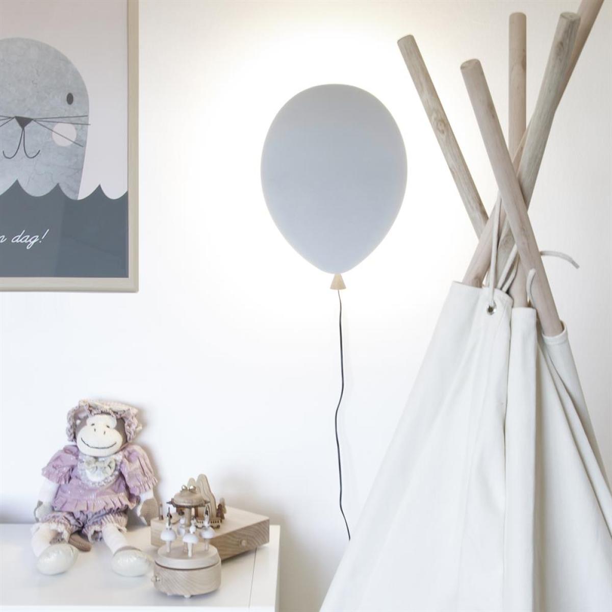 The Balloon wall lamp by Globen Lighting was designed by Patrick Hall and is made of grey-lacquered veneer and details made of matte ash. The cord and switch act as the “string” on the balloon. The light bulb is hidden away behind the balloon, spreading a great glow around the silhouette. Perfect for the kid’s room!.