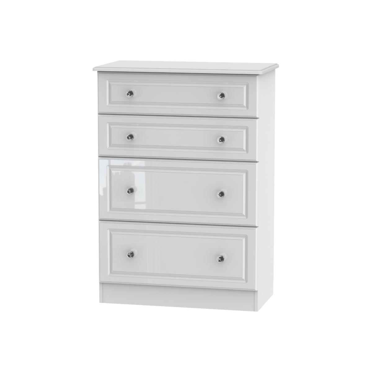 With its two narrow and two deep drawers, this chic and contemporary Balmoral Four Drawer Deep White Gloss Chest is a versatile and spacious storage solution for your bedroom. Finished in a high quality white gloss with smart drawer panelling and stunning crystal effect handles, these drawers will beautifully complement your interior aesthetics. Use the top drawers to hold small accessories, cosmetics or undergarments, while the bottom drawers have ample space for bedding, towels and electronics. Its glossy top panel can be decorated with art, bouquets or ornaments to finish off this timeless piece and make it your own.