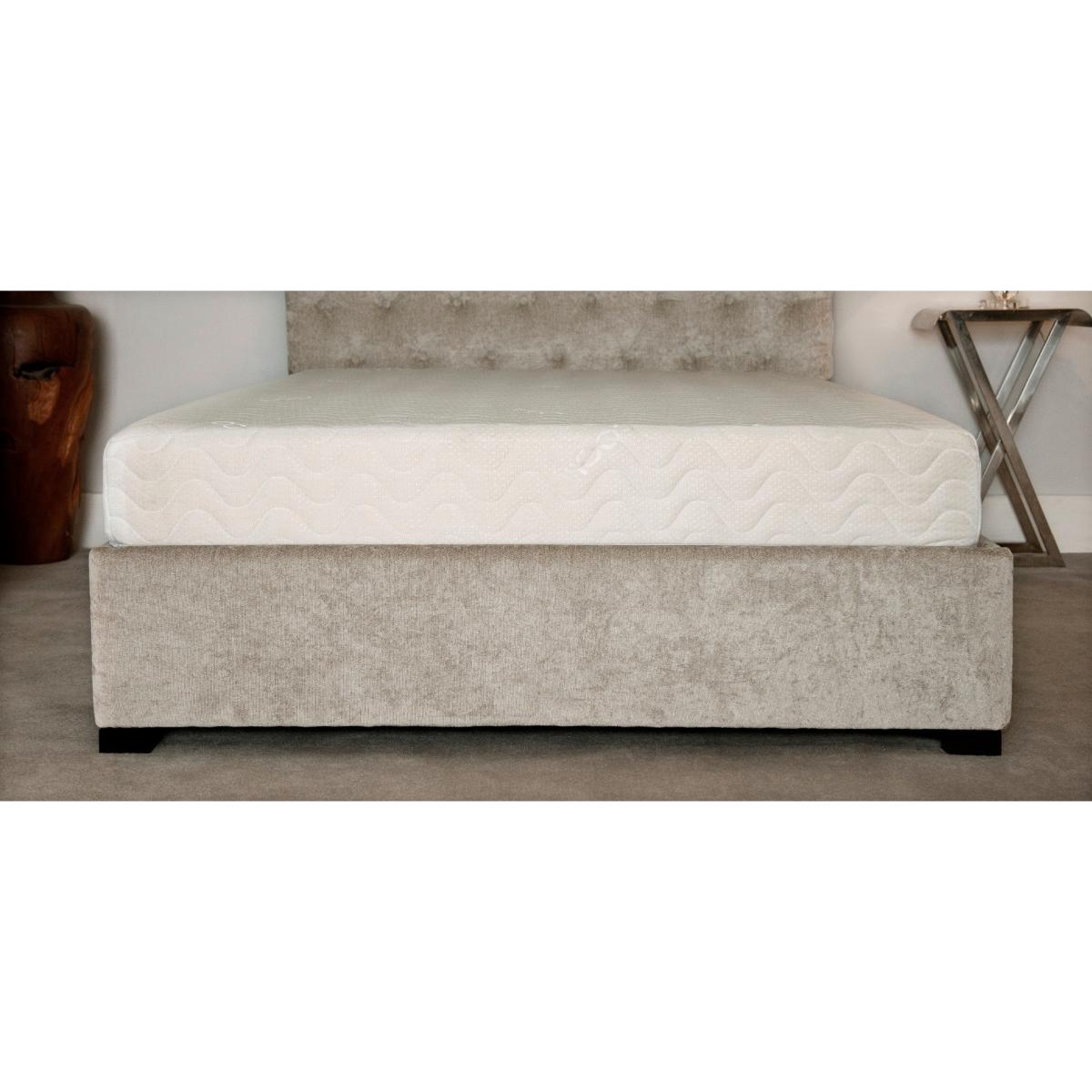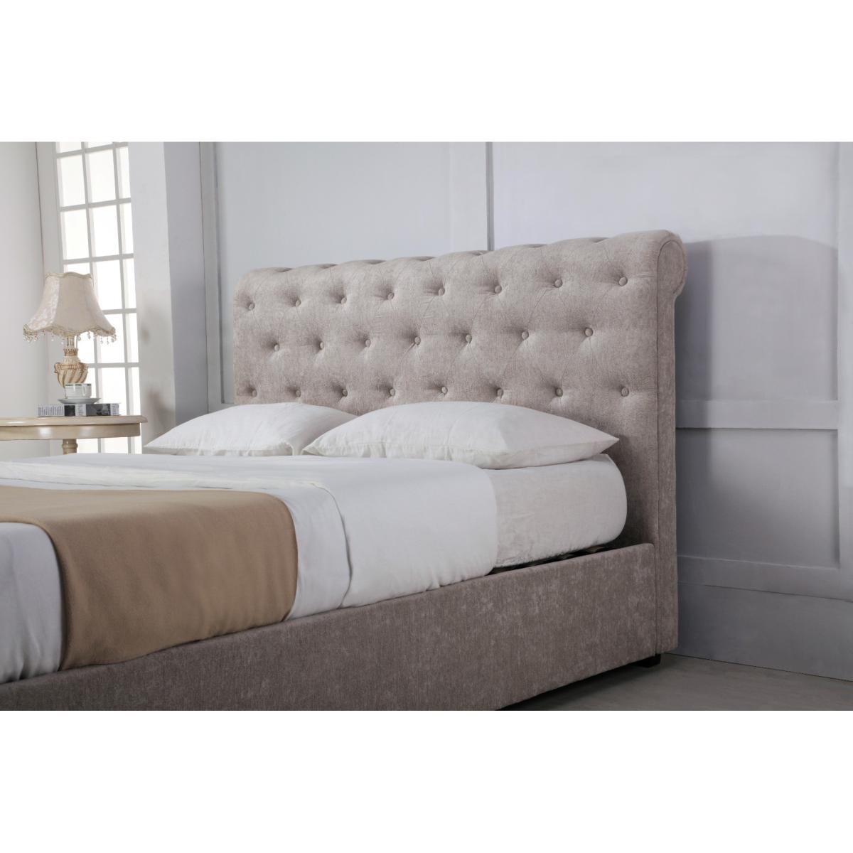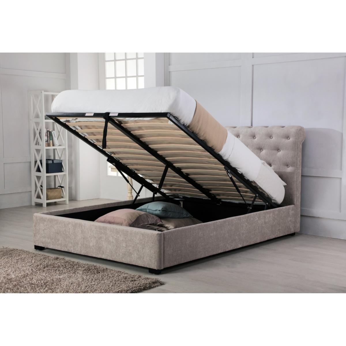 Functional and minimal in style, the incredibly versatile Balmoral Ottoman Bed features a clean, simple silhouette to work with many styles of bedroom, and a sturdy wooden frame with soft stone fabric upholstery. With a scrolled headboard and traditional deep-buttoned effect, it also offers incredible hidden storage space underneath its entire width – accessed via a smooth hydraulic gas lift. Minimal and versatile in design, to suit a range of bedroom styles. A sturdy wooden frame ensures durability. Teams style and practicality with its simple lines and substantial storage A hydraulic gas lift opens up to provide amazing hidden storage beneath the bed. Finished with dark wooden bracket feet. Storage depth: 25cms. Available in Double, King or Super King. Also available: Balmoral Grey Low End Scroll Ottoman Bed. Please note: The mattress is not included with the bed. Please note: Kerbside delivery only.