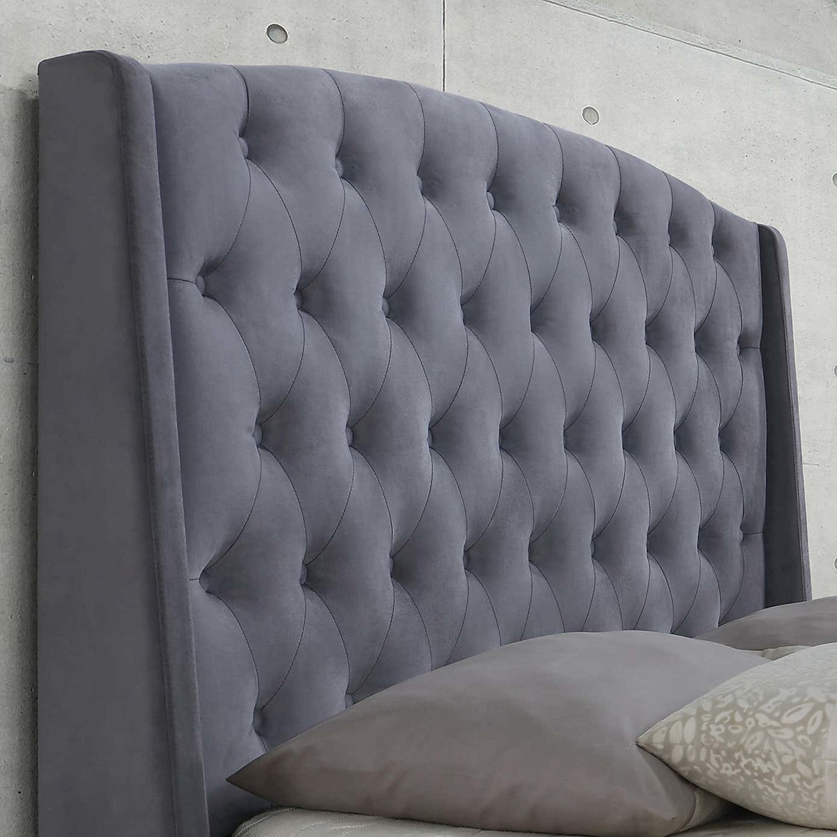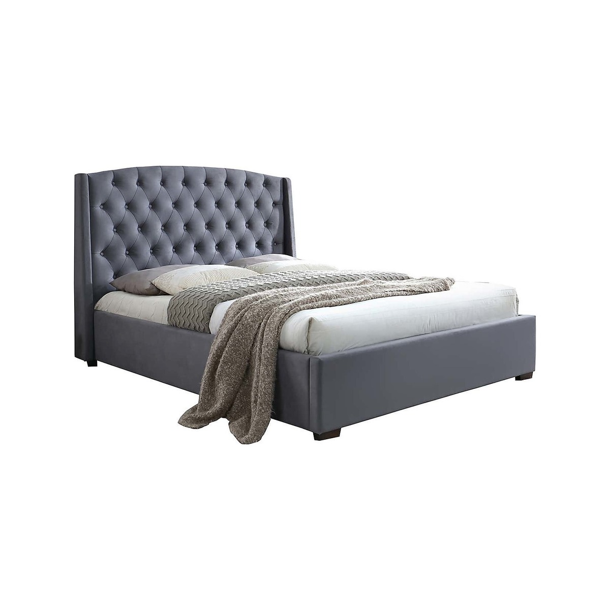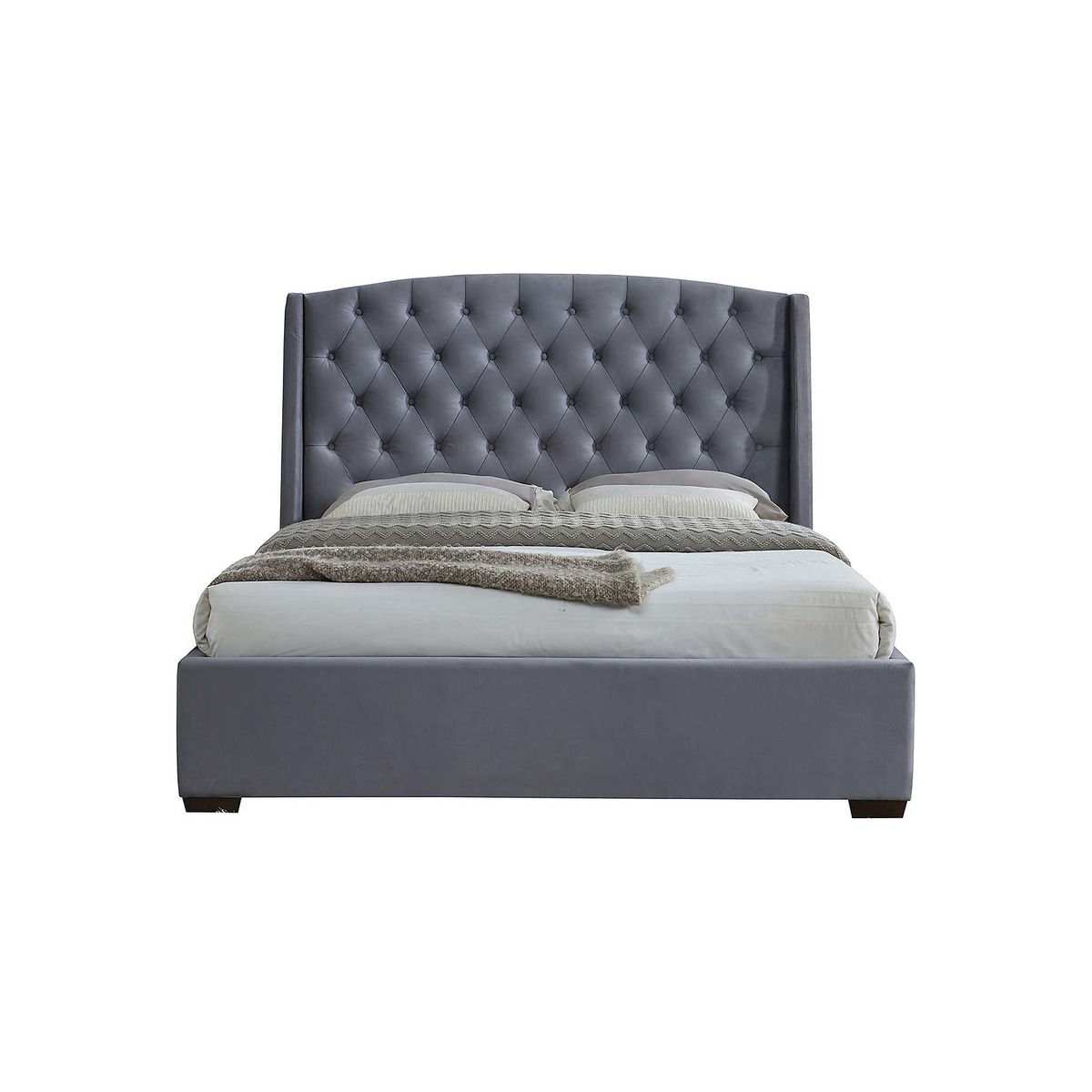 Make a grand style statement with the elegant and contemporary Balmoral Velvet Bed Frame. Upholstered in luxurious grey velvet, this bed features a wingback headboard with beautiful tufted detailing. Please note: Price is for bed frame only and does not include mattress. Please note, unfortunately we cannot deliver this item to the Channel Islands.