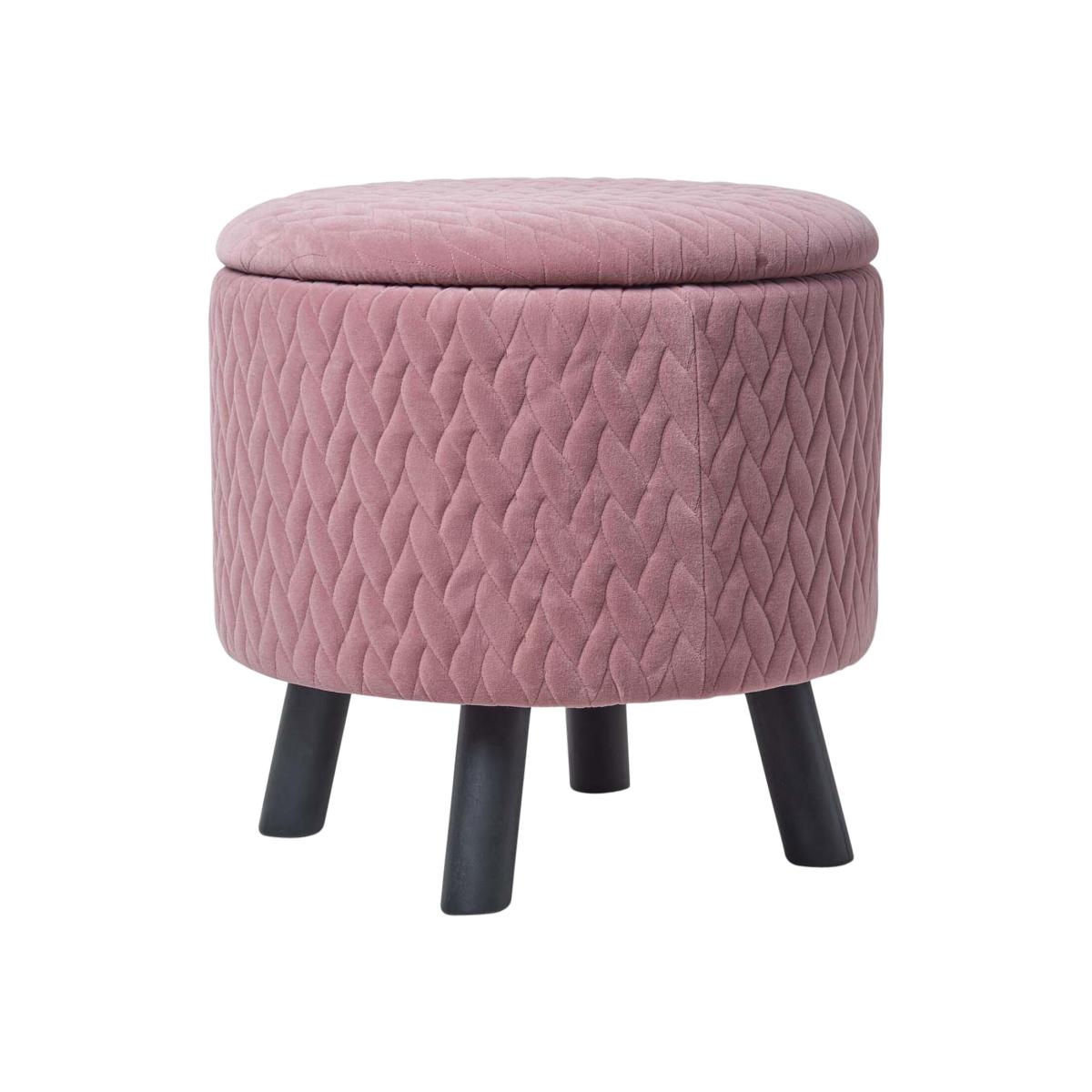 The Balmoral storage footstool, an exclusively designed statement-making velvet pouffe from Homescapes. Add a touch of luxury to your interiors with this super soft round velvet footstool, expertly designed to complement retro and on-trend styles and handcrafted by skilled artisans. Measuring 49 cm tall, the Balmoral is upholstered in a dusky pink velvet that has a plaited quilted finish. A multifunctional pouffe with hidden storage, the removable lid uncovers ample storage space and is perfect for storing away unwanted clutter, magazines and remote controls. A decorative home accessory it can also be used as a footrest, vanity stool, occasional seat or as a simple yet stunning room accessory that will compliment all interior styles and colours. A large round pouffe measuring 50 x 50 x 49 cm, Balmoral is available in a range of 2 complimentary colours (pink and grey) and is part of Homescapes exclusive collection of velvet pouffes and footstools. Wipe clean only. No assembly required.