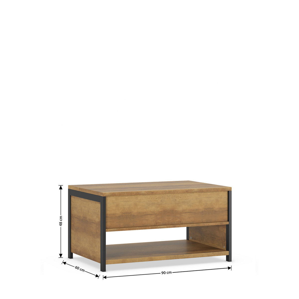 The industrial lines of our wood-effect Baltimore coffee table are framed by contrasting dark metalwork to achieve the ultimate modern look. Clever lift up central storage space beneath the tabletop. The table also features an open shelf below. We’re so confident our furniture is built to last, our industry-leading guarantee covers any manufacturing failure on all furniture. That’s our promise, and why our furniture comes with a 10-year guarantee that you can trust. Excludes: outdoor furniture and any issues that are a result of normal wear and tear, improper care or accidental damage.