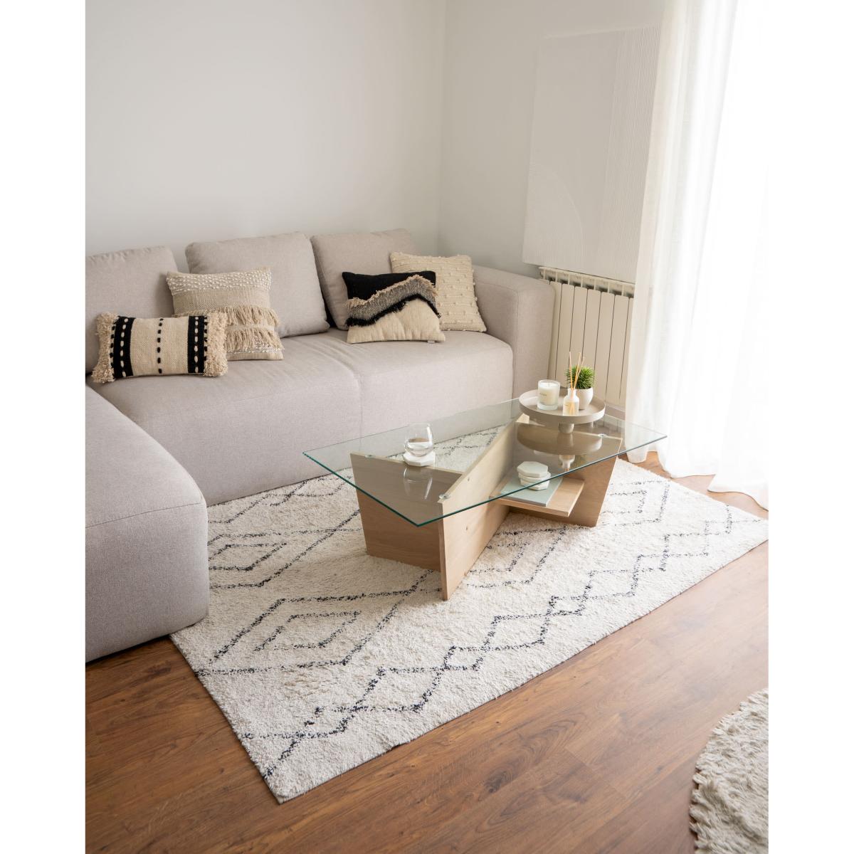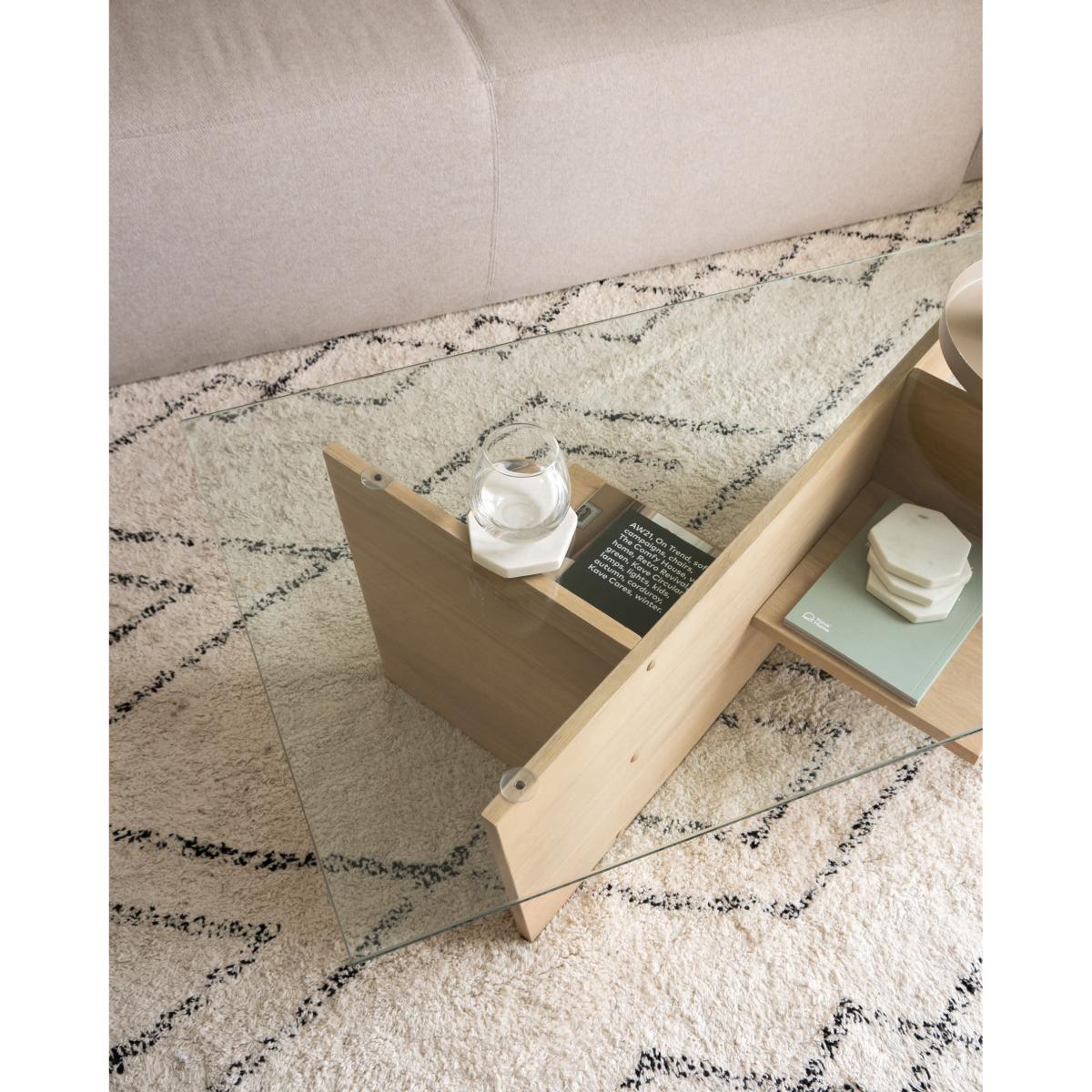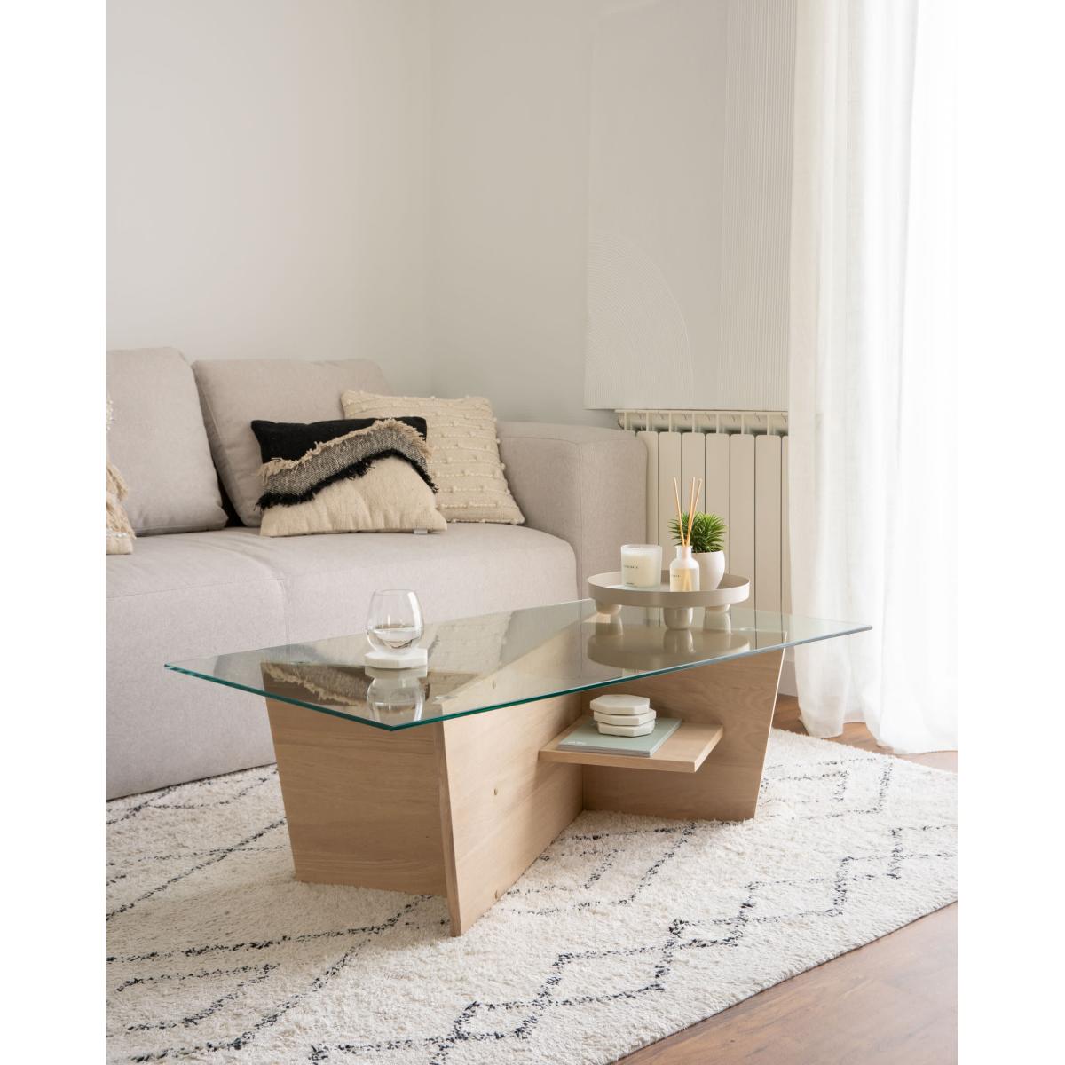 I’m a fan of the Wind table for its clean glass surface and geometric timber base - it feels both light and deliberately sculptural without overwhelming the room. It suits minimalist, Scandi-inspired and contemporary urban spaces, especially where you’d like to introduce a subtle design statement. Keep styling simple: group a low vase or sculptural object on one side, stack two or three coffee-table books on the other, then add a small plant or candle to bring a hint of life. Its generous 110 × 60 cm footprint also means you can arrange remote controls or trays without spoiling the view of the base.