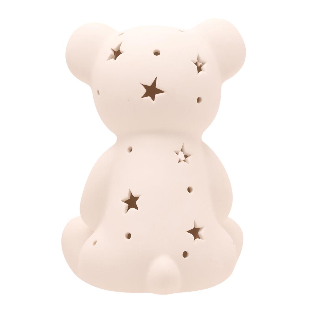 * Teddy shaped design* Ceramic night light* Star and circle pattern* Battery operated* Gentle illumination This beautiful ceramic night light from BAMBINO BY JULIANA in a charming teddy shape will enhance any nursery or child’s bedroom. Perfectly combining function with design, the star and circle shaped perforations allow a gentle illumination, creating captivating patterns in the space. Effortlessly build a cosy and enchanting atmosphere and make bedtime a wonderful experience.