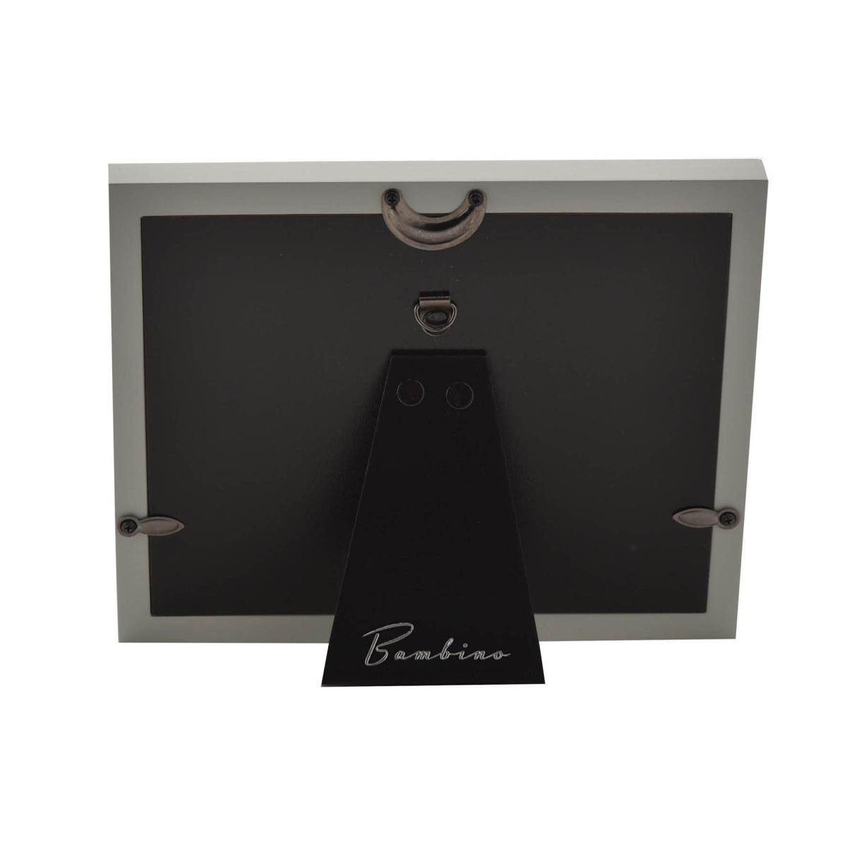 * Perfect as a gift for a loved one* Can be wall mounted or freestanding* Single photo frame A My 1st Scan photo frame from BAMBINO BY JULIANA. This beautifully decorated frame is a wonderful way for parents-to-be to present their first official photograph. The wooden frame has a matt grey finish, enhanced by a large white mount, complete with ‘My 1st Scan’ silver foil embossed decal and landscape aperture. The frame is designed for either freestanding display or wall hanging. The frame is packaged in a white closed box.