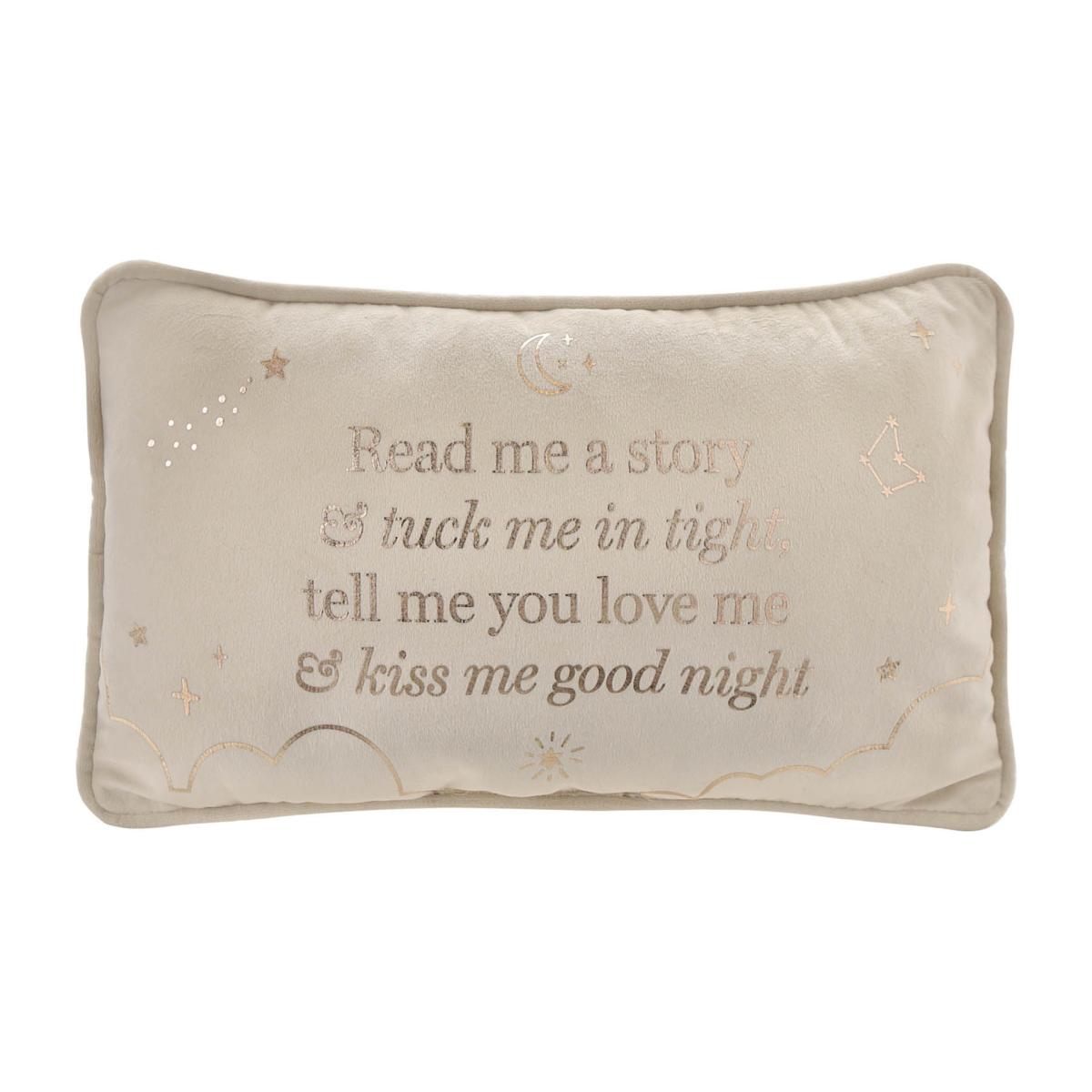 I love this little cushion for its soft off-white velvet finish, which adds subtle texture and keeps the look versatile. It's perfect for nurseries, children's bedrooms, or cosy reading corners, especially because of its charming ‘Read me a story’ message that creates a warm, inviting vibe. When styling, consider pairing it with neutral-toned furnishings or soft pastel shades to enhance its gentle feel. Practical tips include using it on a bed or chaise lounge to add comfort, or layering it with other cushions of varying sizes and textures for a more curated, cosy look. It’s a charming piece that combines both comfort and character effortlessly.
