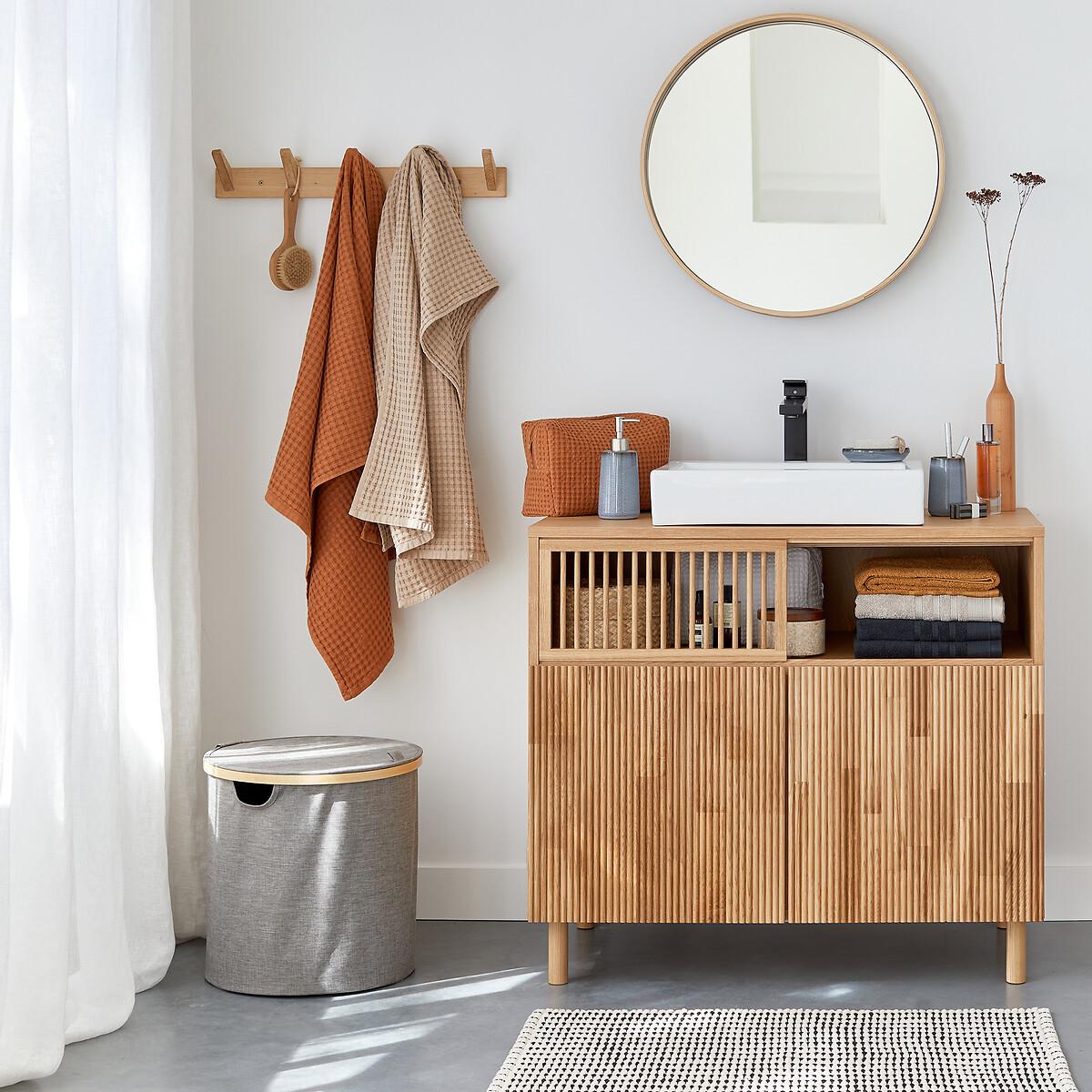 This laundry basket in polyester with a bamboo structure is practical and well thought out: 2 carrying handles and 1 lid. Durable and easy to clean.