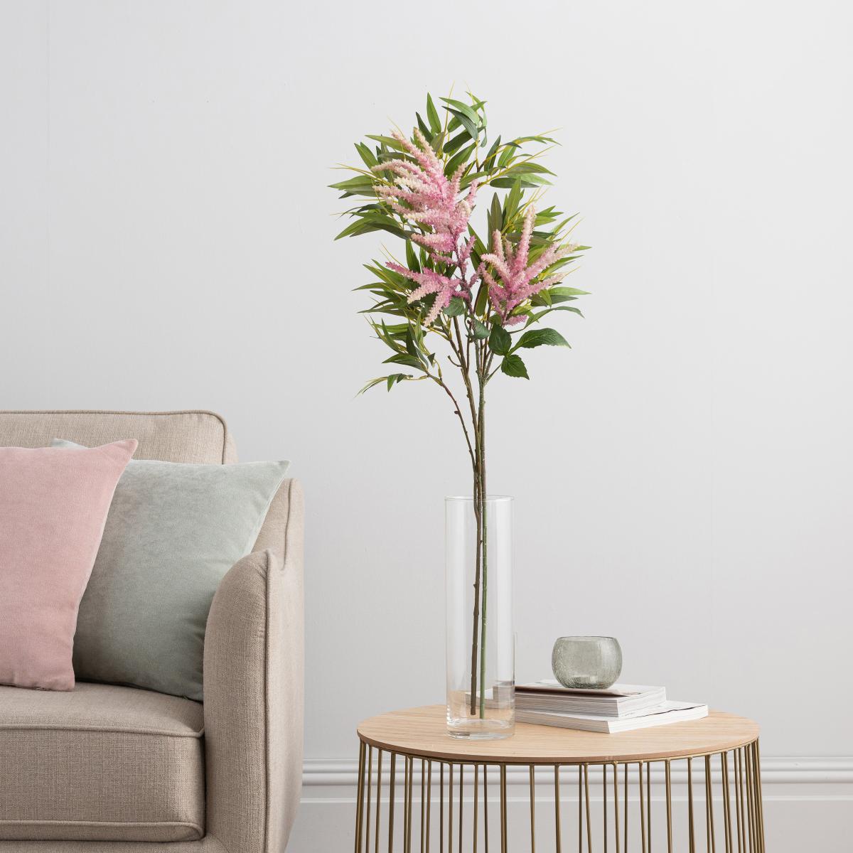 I love this faux bouquet for its subtle yet vibrant touch of colour, making it a versatile addition to both contemporary and traditional interiors. The pink hybrid of bamboo and astilbe offers a fresh, natural look without the fuss of maintenance, ideal for adding a touch of softness to a living space or bedroom. It works particularly well in minimalist setups when styled in a tall, clear vase on a side table or console - no need for large arrangements, even small clusters can create impact. My practical tip would be to pair it with neutral tones or delicate metallic accents for a chic, understated look, and to place it where it can be appreciated year-round without wilting or needing sunlight.