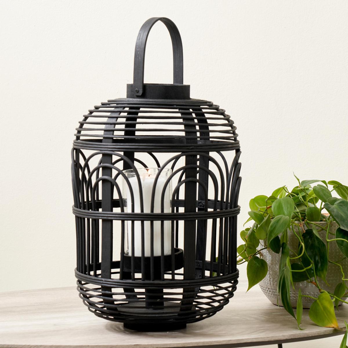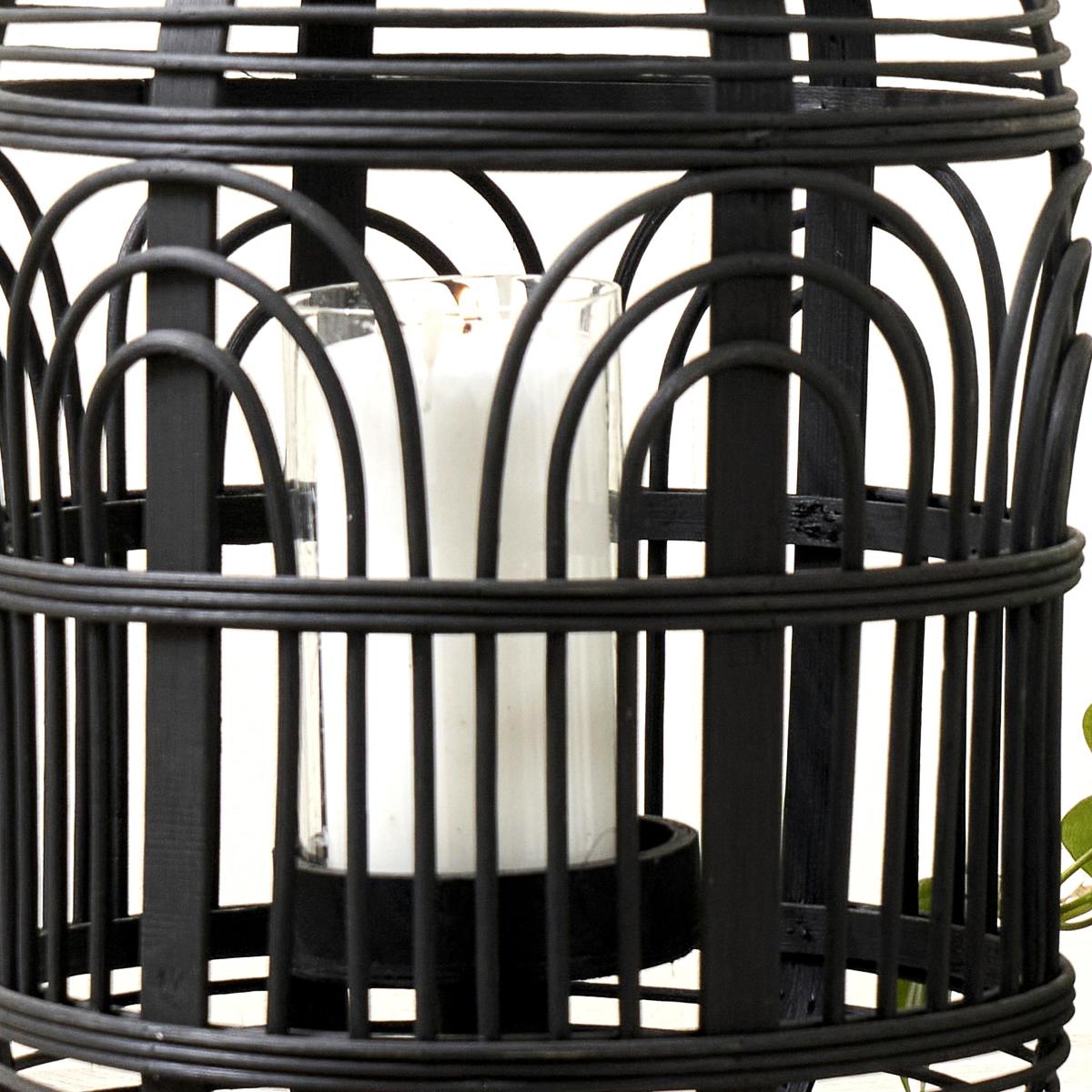 * Natural Bamboo and Glass * Large Hurricane candle holder * Scandi styling This fabulous large natural bamboo lantern with decorative design looks fabulous when unlit, and even more fabulous lit. The impressive lantern creates a welcome atmospheric glow. The lantern will look fabulous as a single or used in multiples for a bigger statement.
