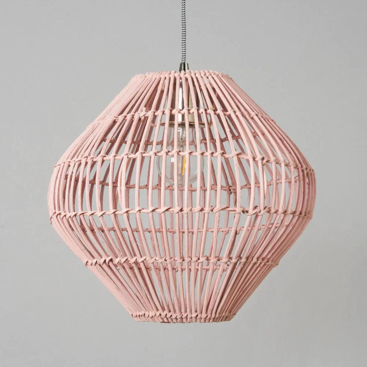 Bamboo Bobbin Herringbone Cable Ceiling Pendant Light, Pink