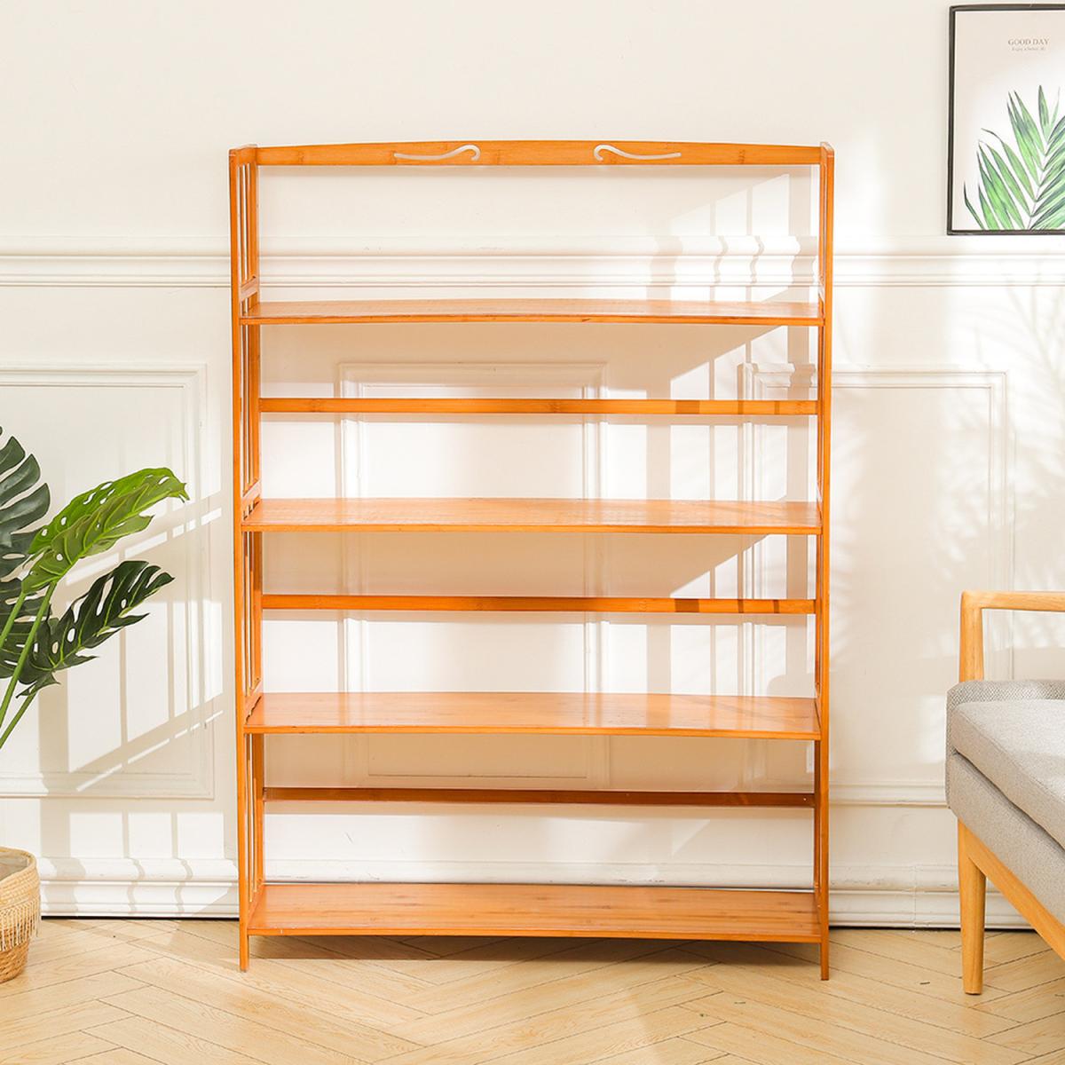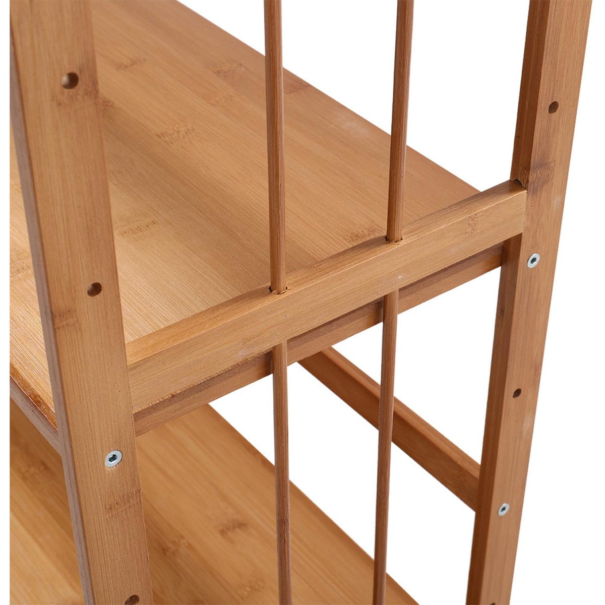 This shelving unit is structured with natural wood color bamboo material, with the characteristic of strong stability and durability, without giving out any horrible smelling and no harm to your family body. Features multiple tiers, offering much storage spaces for you to holds good amount of books, succulents, flower planters, bathroom accessories, baskets, makeup cosmetic, or used as a shoe shelf and plant stand as well. The legs of the rack are uniformly distributed with reserved screw holes, allowing you to adjust the height between the racks according to your own needs, it is very convenient to use. Flat packing, easy to assemble. It can be placed in living room or bedroom to display, adds an elegant style to your home.
