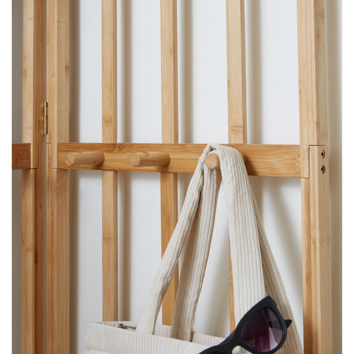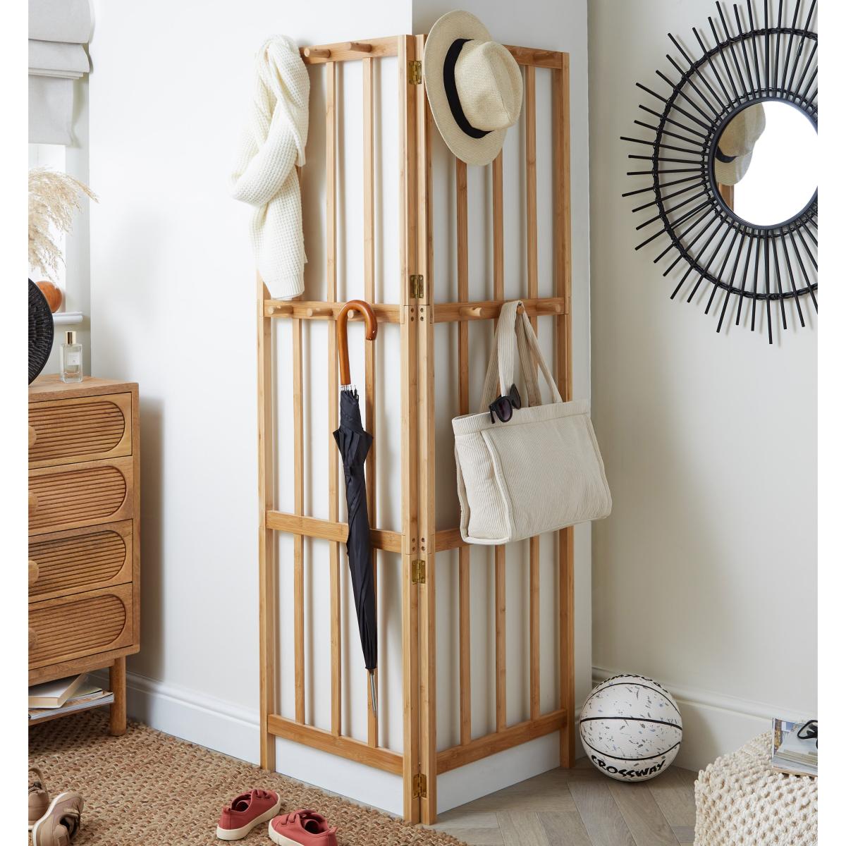 Create more space with this bamboo corner coat stand. It folds 180° to suit your space and maximize storage, the nine wooden hooks allow you to keep all your essentials to hand making it easy to get ready to take on the world. It’s made of 100% bamboo construction, so you know it’s durable and eco-friendly!