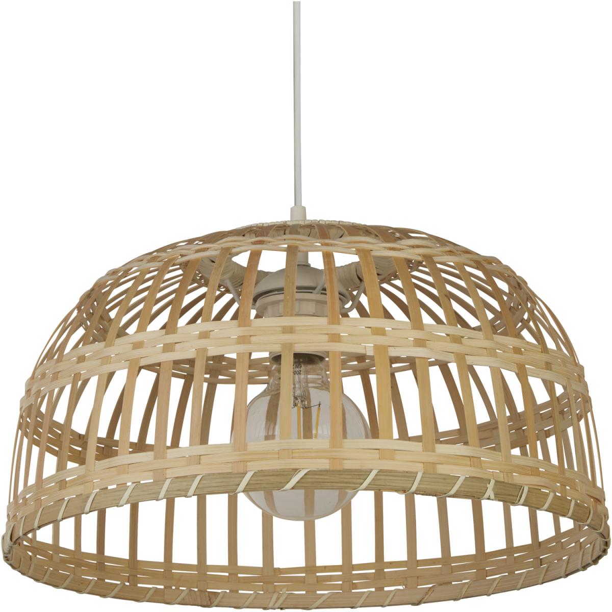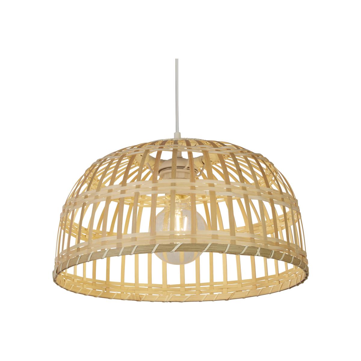 This bamboo easy fit shade is a quick and easy way to update any living room or bedroom Strips of natural bamboo are crafted into a dome shaped 40cm diameter shade allowing light to shine through and create stunning lighting effects creating a contemporary Scandi vibe in any home Shade only Bulbs not included We recommend E14 E27 or B22 bulbs