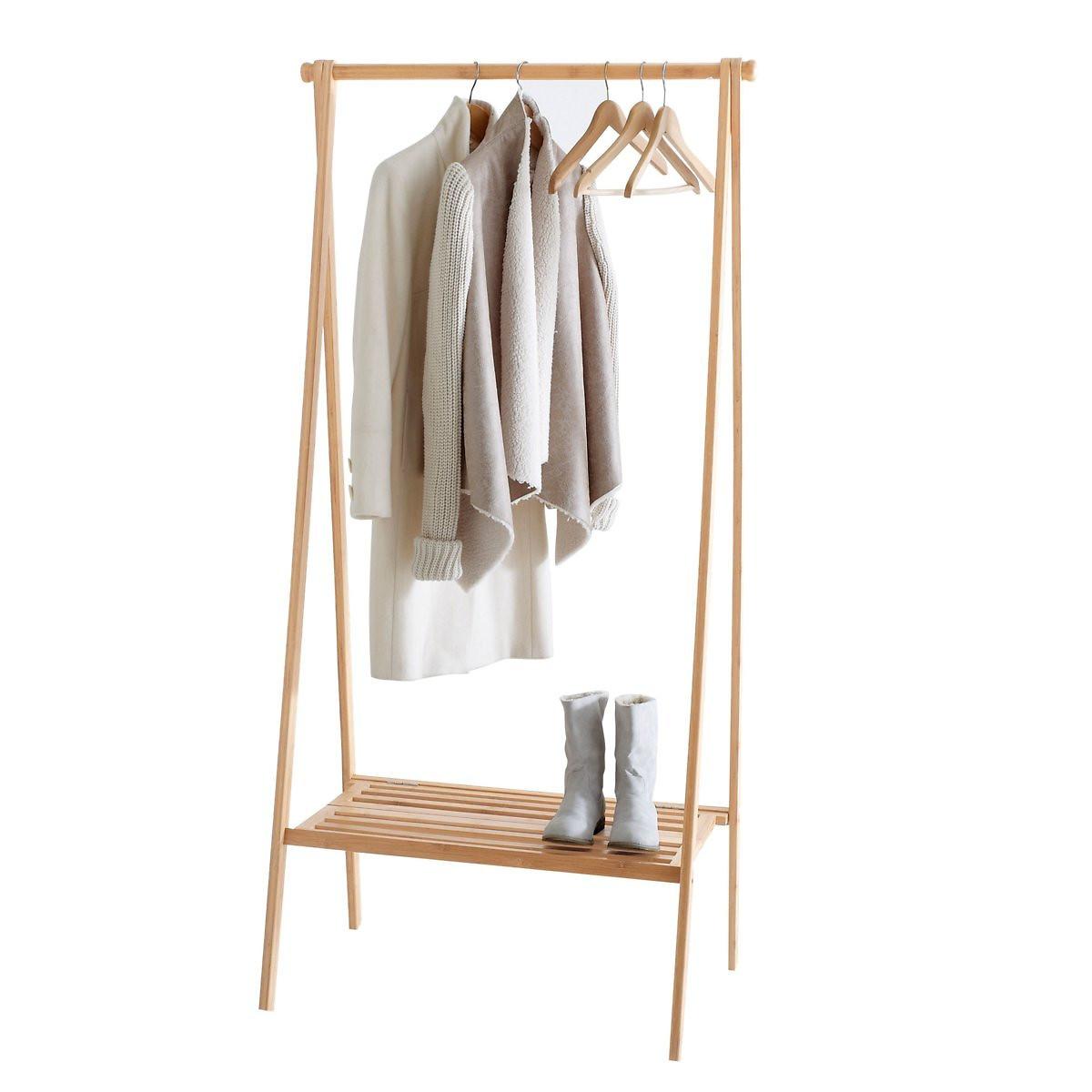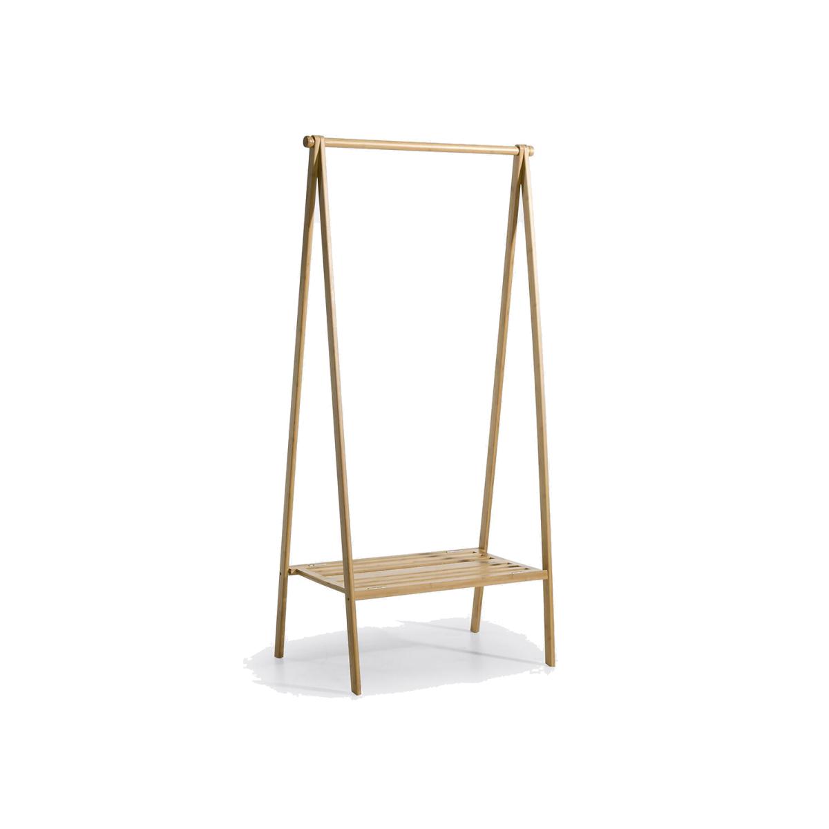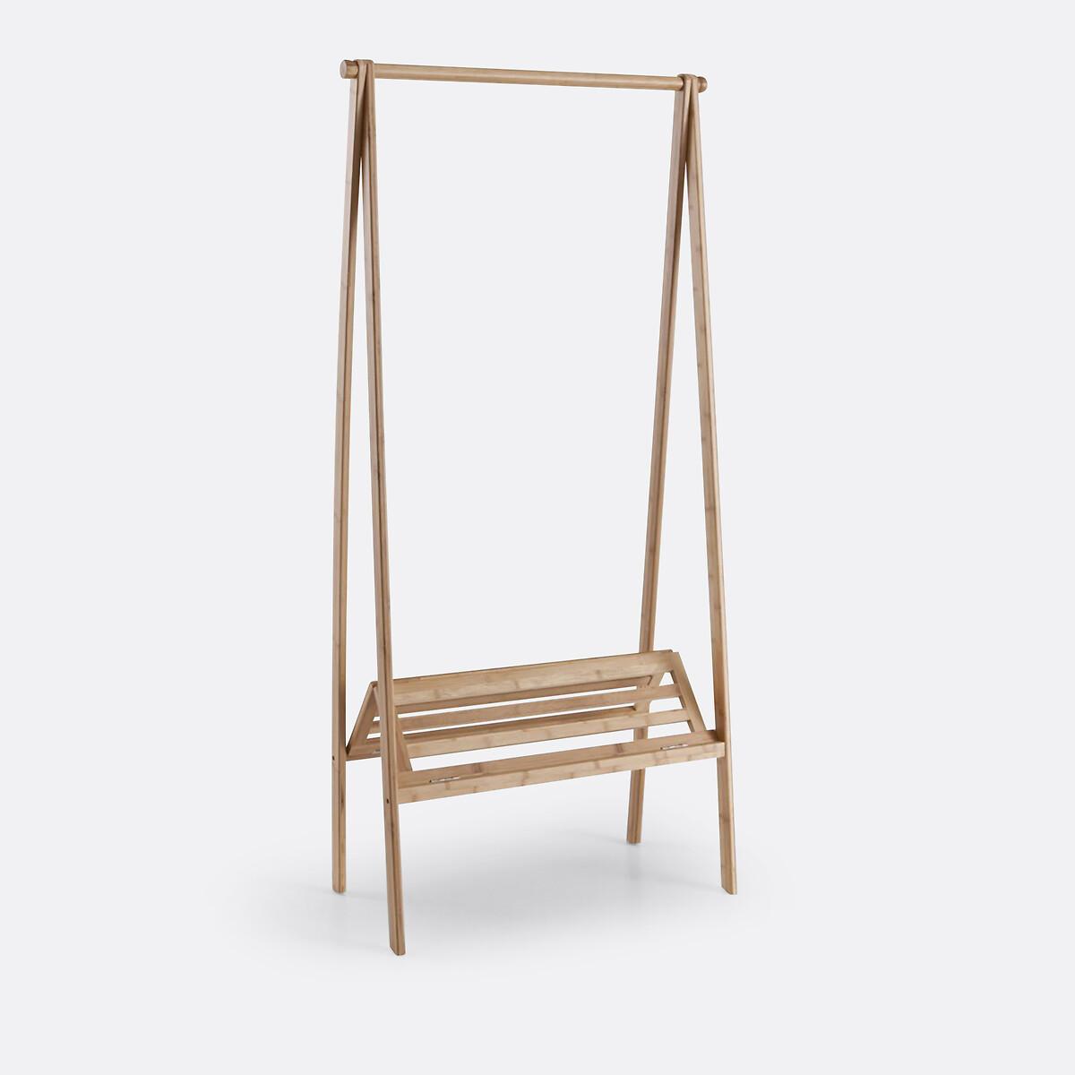 The bamboo folding clothes rack with shelf. It fits right where you need it: dressing room, cloakroom, hallway, bedroom...Product Details • Can be folded • 1 shelf • Your foldable rack is sold to assemble yourself • Bamboo nitrocellulose finish. Dimensions • Folded L83.5 x H170 x D9.5cm • Unfolded L83.5 x H170 x D56cm Parcel dimensions and weight:1 parcel • 183 x 30 x 9cm • 7.5 kg