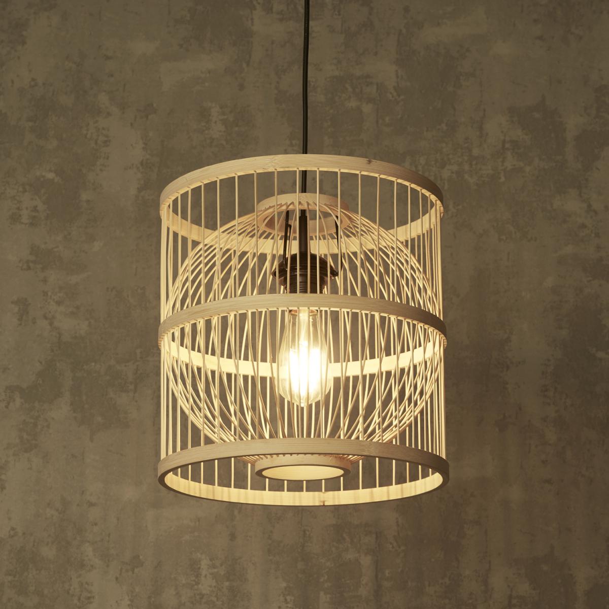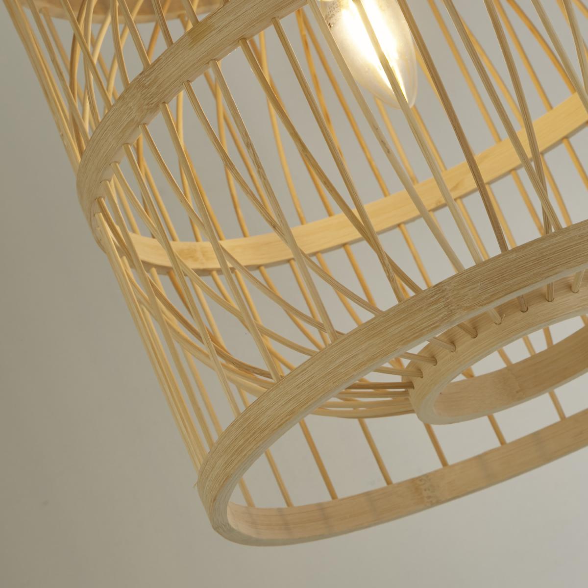 This quirky and fun bamboo shade is great for living spaces and bedrooms alike. Fashioned in a cylinder shape with inner sphere frame, the open design means you get plenty of light when illuminated and it's guaranteed to get guests talking.
