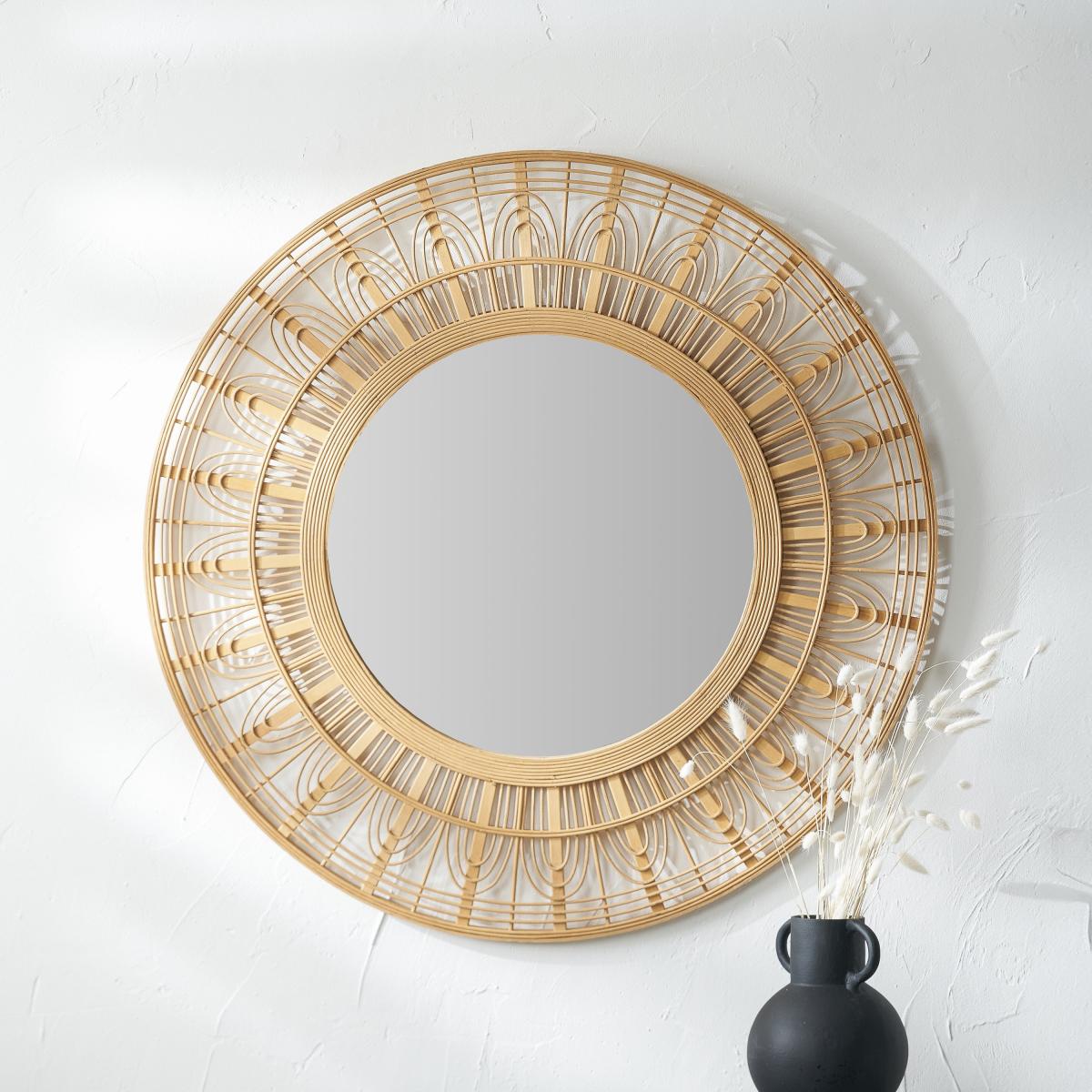 I love the natural, textured look of this round wall mirror with the bamboo frame; it adds a touch of warmth and organic style to various interiors. It works particularly well in boho, coastal, or Scandinavian spaces where natural materials are key. To style it effectively, consider hanging it above a console table or in an entryway to create an inviting focal point, or pair it with other natural fibre accessories for a cohesive look. Practical tip: position it where it can reflect light to brighten the room, but avoid placing it directly across from a window if you want to minimise glare.