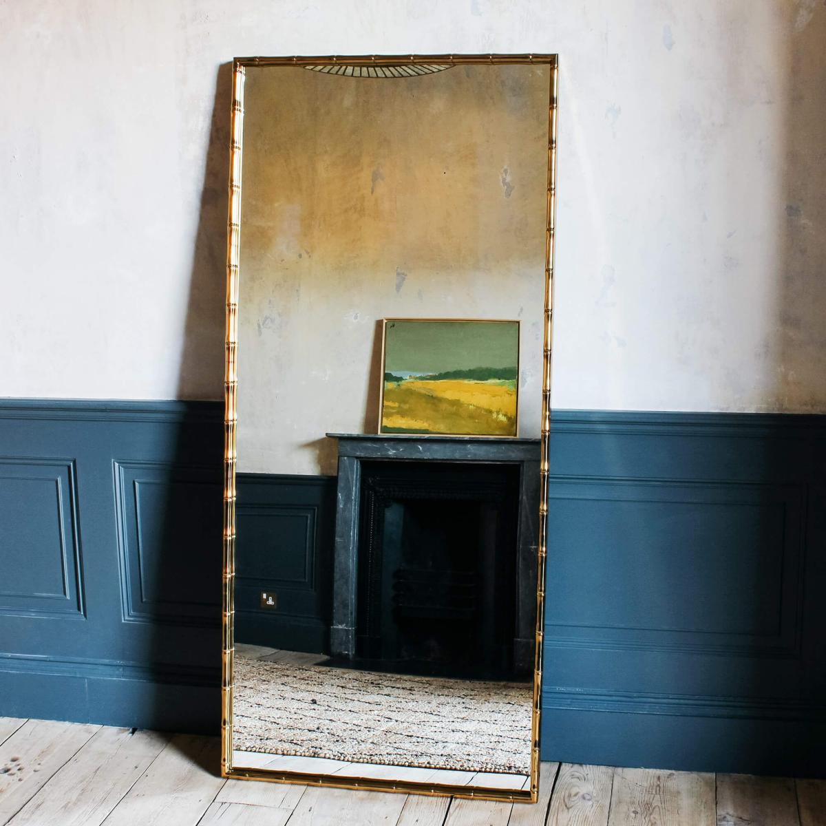 Designed to look like bamboo, this eye-catching mirror is crafted from stainless steal with a brass-plated finish, perfect for contemporary spaces.